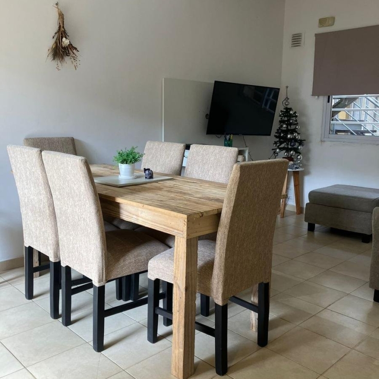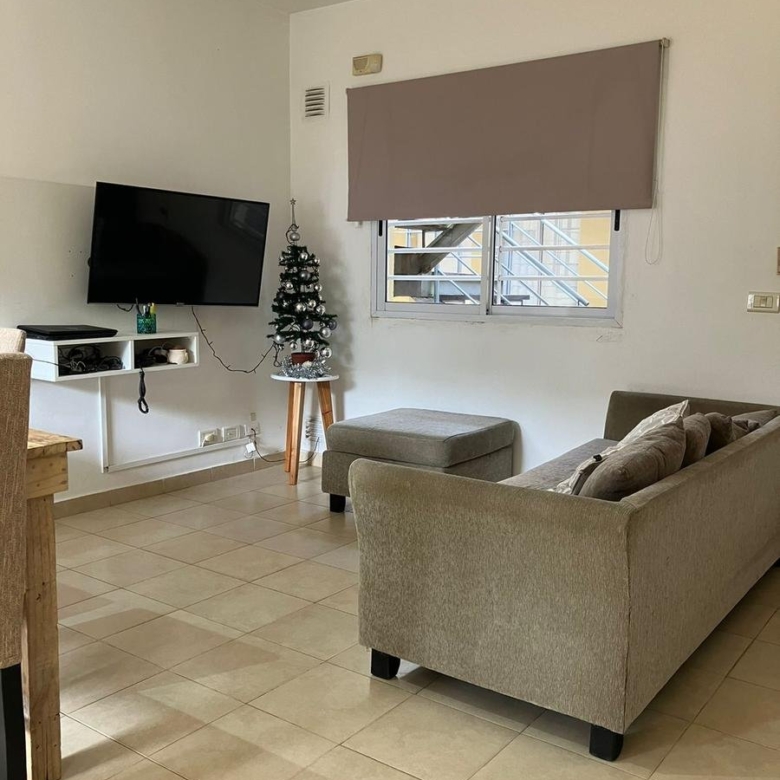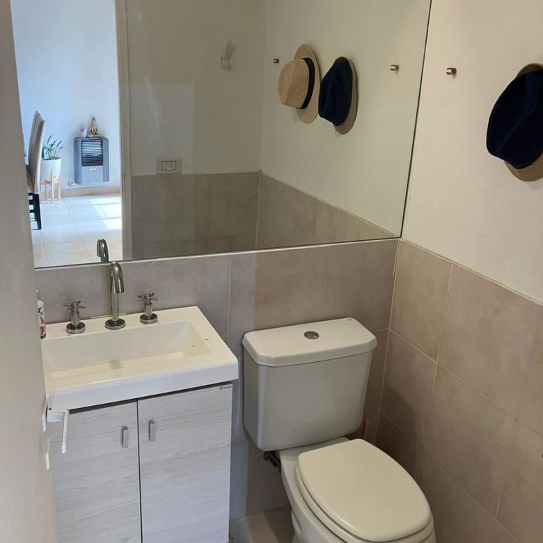 PB: Toilette, cocina comedor, living con smart tv, balcon con parrilla y lavarropas automatico.