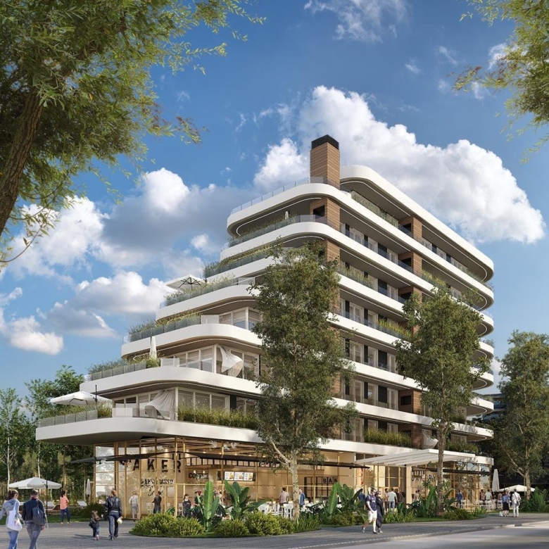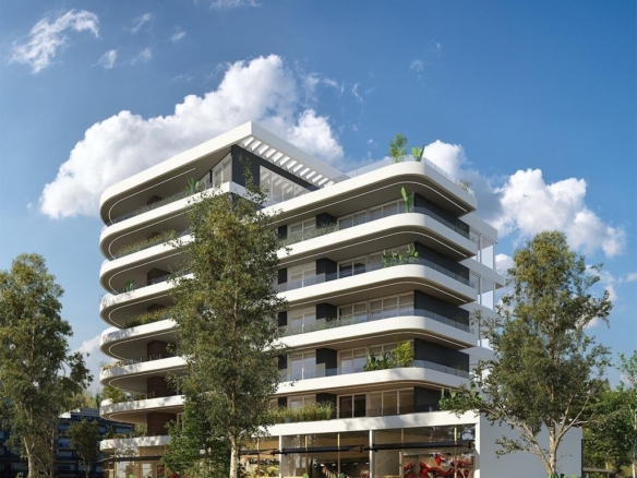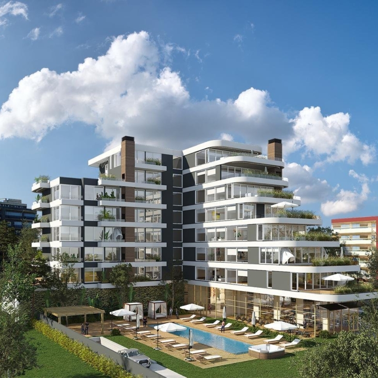 El desarrollo se compone de planta baja y siete pisos, con cinco locales comerciales y unidades de 2, 3 y 4 ambientes, diseñadas de forma escalonada para asegurar privacidad y vistas únicas.