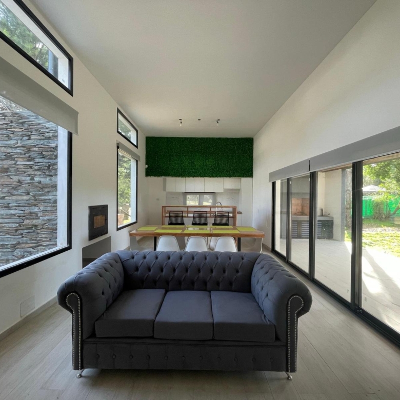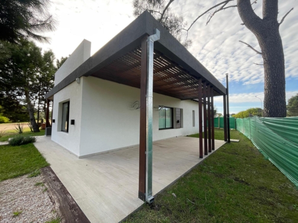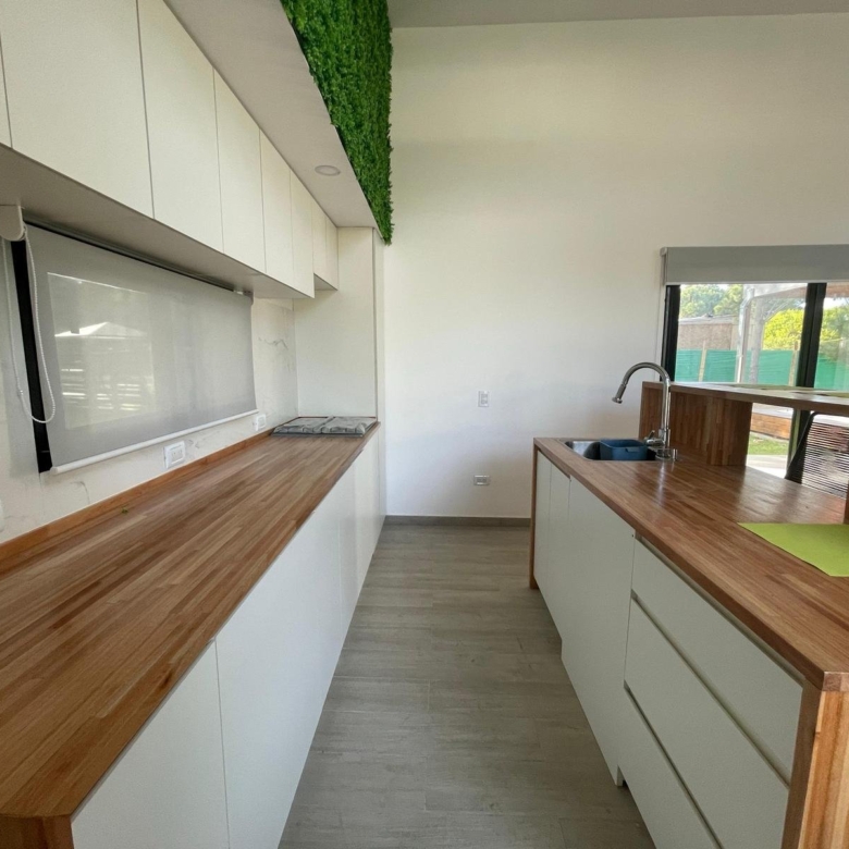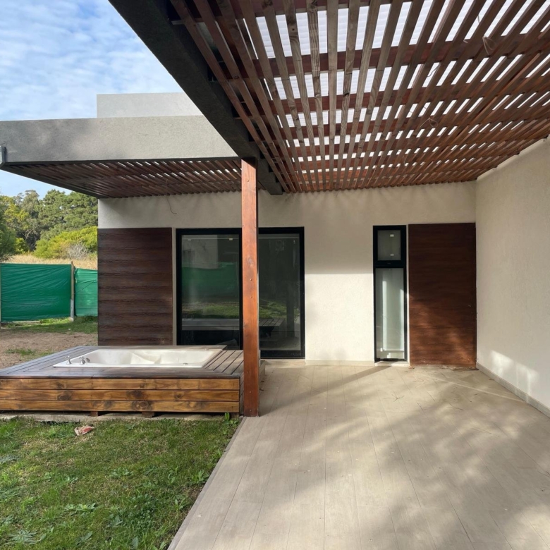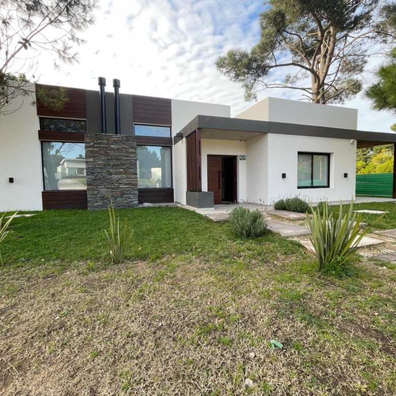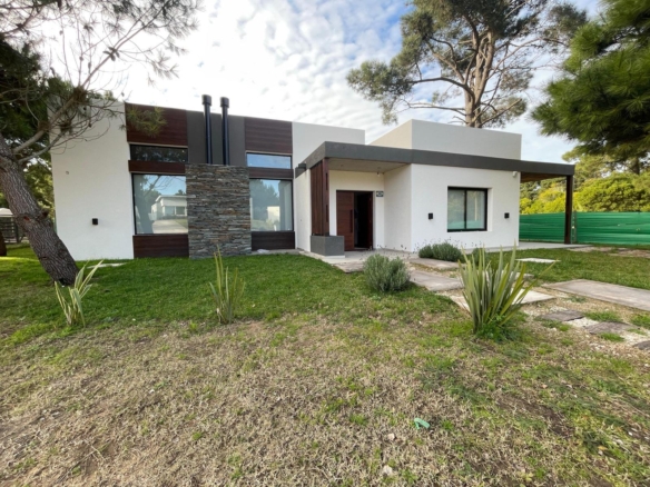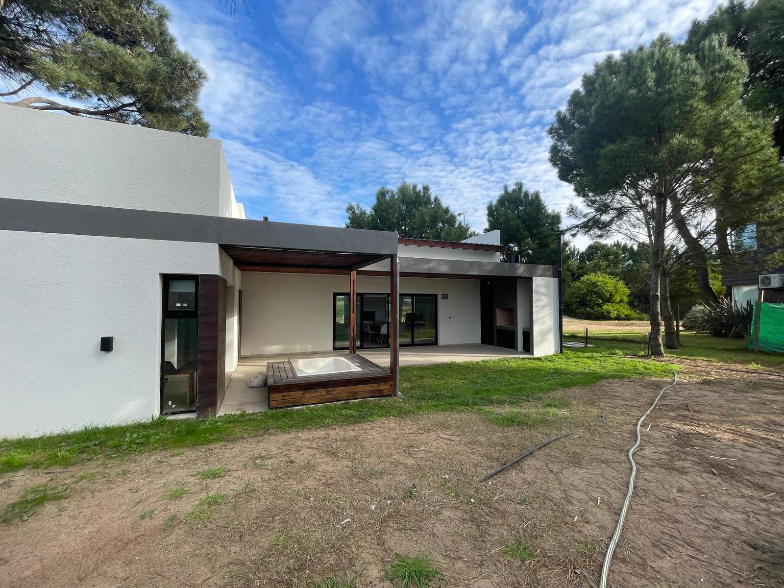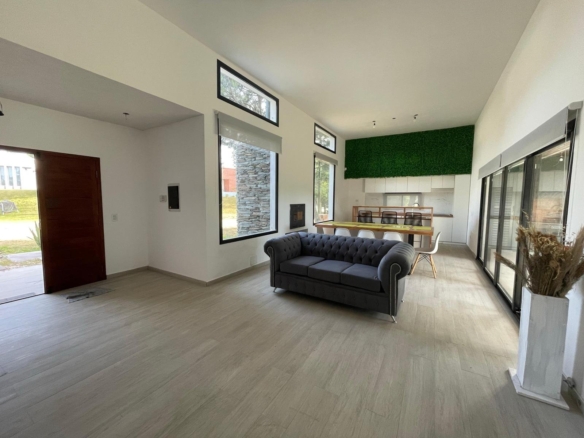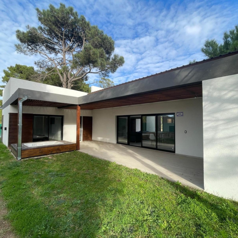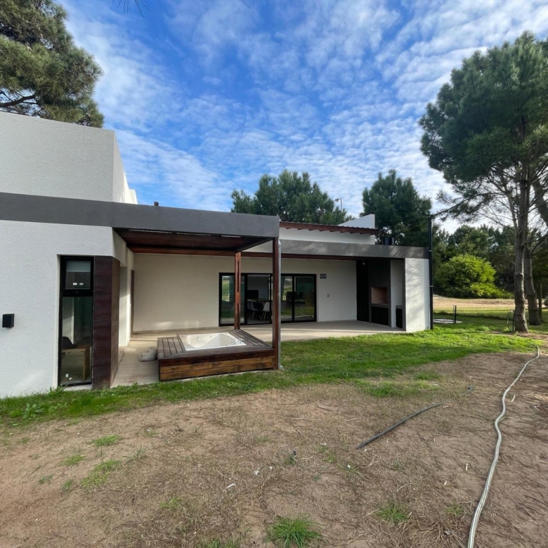 La casa esta construida en una sola planta en un lote de 615M2 cuenta con un espacioso living-comedor con grandes ventanales que permiten la entrada a mucha luz natural, cocina integrada por una gran barra desayunadora, desde la sala de estar tenemos salida a un precioso quincho semi cubierto con parrilla. Tres increíbles dormitorios principal en suite con salida a un precioso jacuzzi, y dos excelentes baños completos.