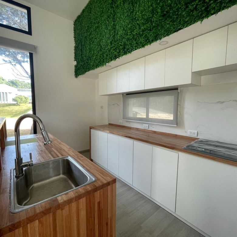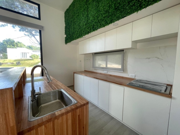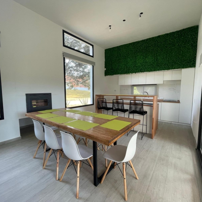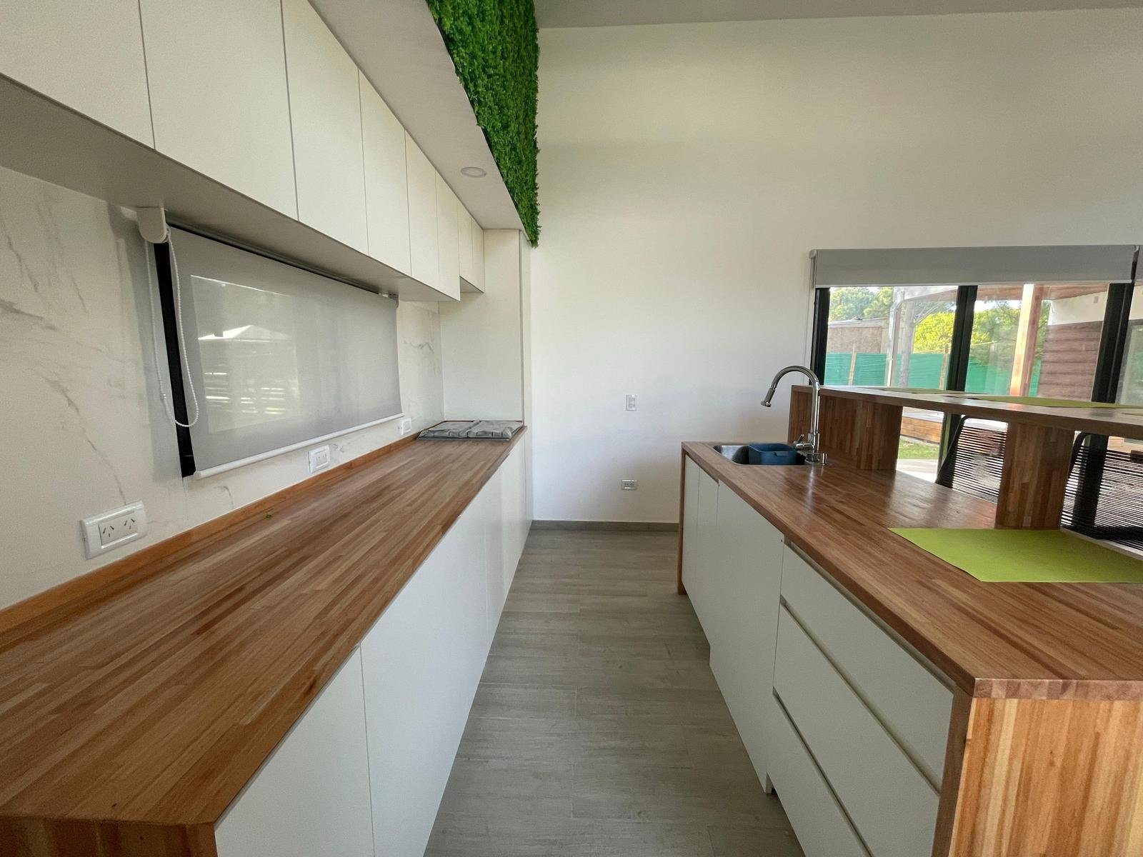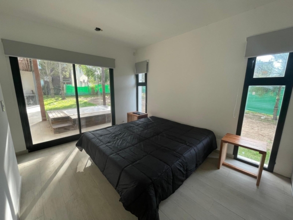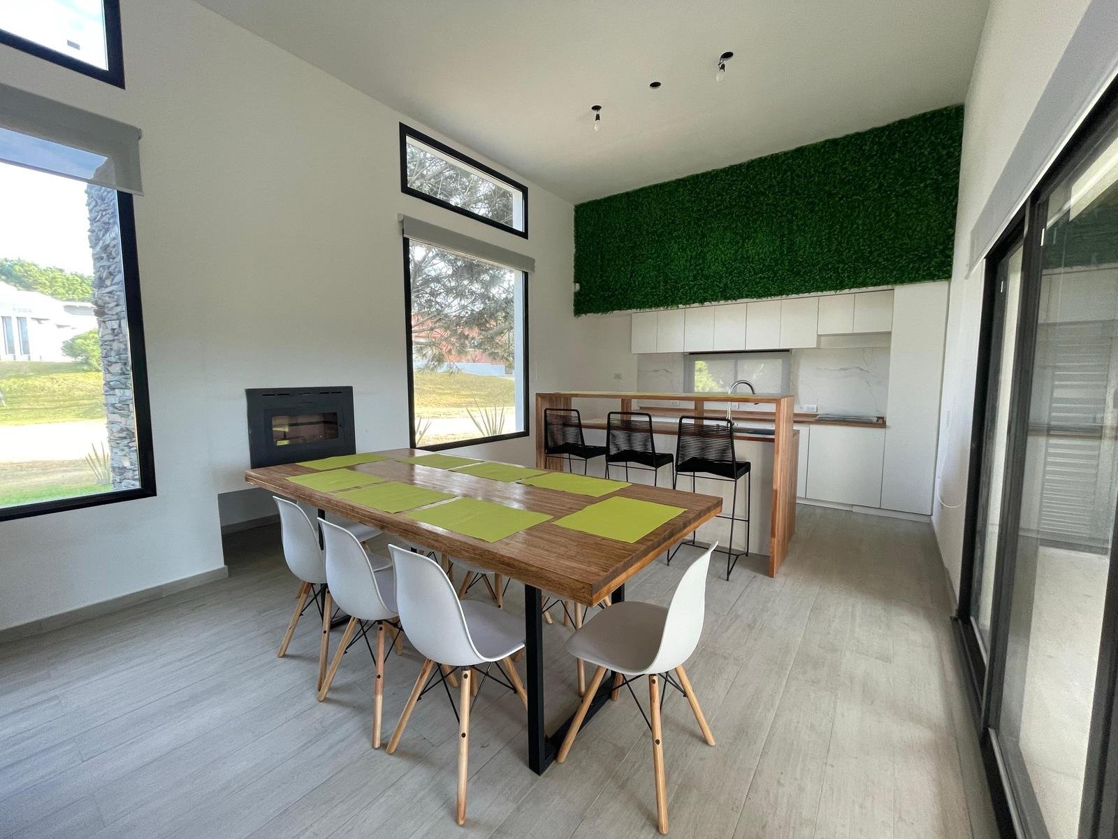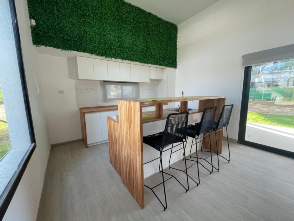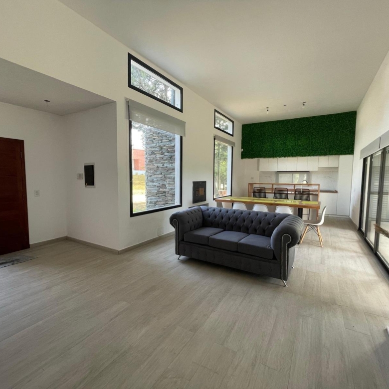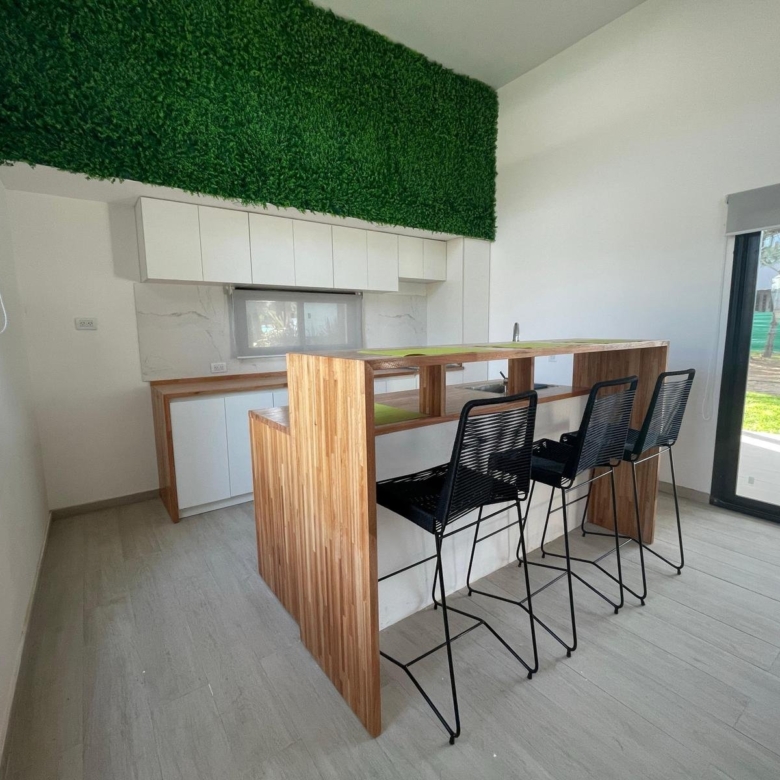 La casa esta construida en una sola planta en un lote de 615M2 cuenta con un espacioso living-comedor con grandes ventanales que permiten la entrada a mucha luz natural, cocina integrada por una gran barra desayunadora, desde la sala de estar tenemos salida a un precioso quincho semi cubierto con parrilla. Tres increíbles dormitorios principal en suite con salida a un precioso jacuzzi, y dos excelentes baños completos.