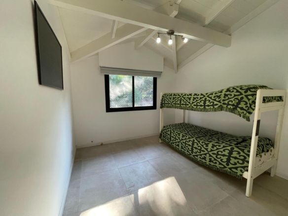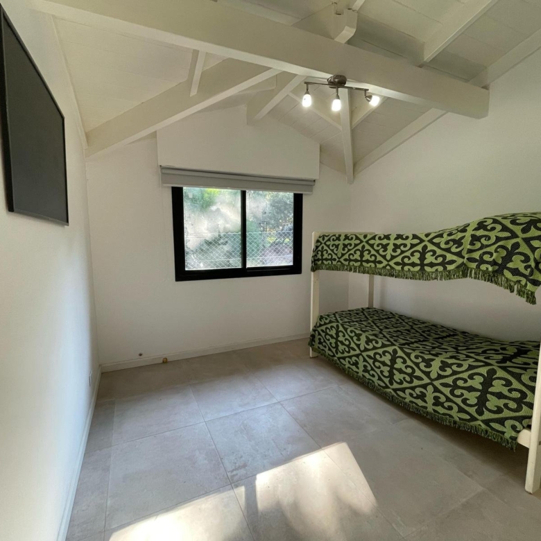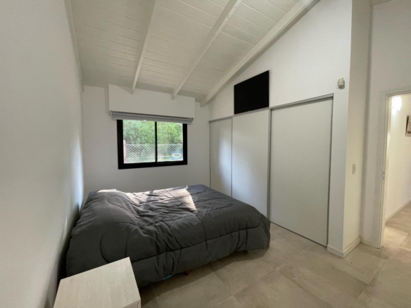 La propiedad dispone de 3 dormitorios, incluyendo una suite principal y 2 baños completos. Desde el living se accede a un quincho con parrilla, perfecto para reuniones, y a un parque lleno de verde, ideal para relajarse al aire libre.