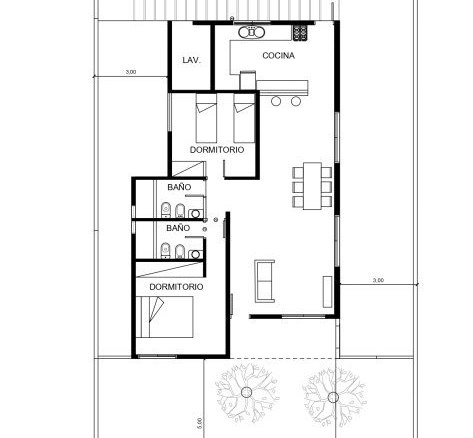 Distribuida en living-comedor-cocina integrados, dos dormitorios y dos baños.