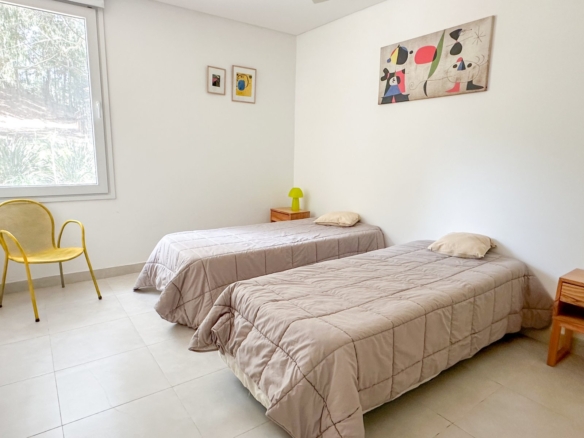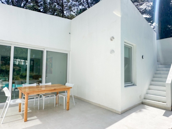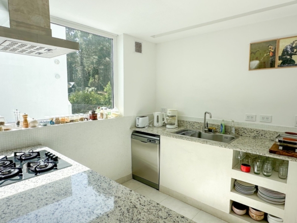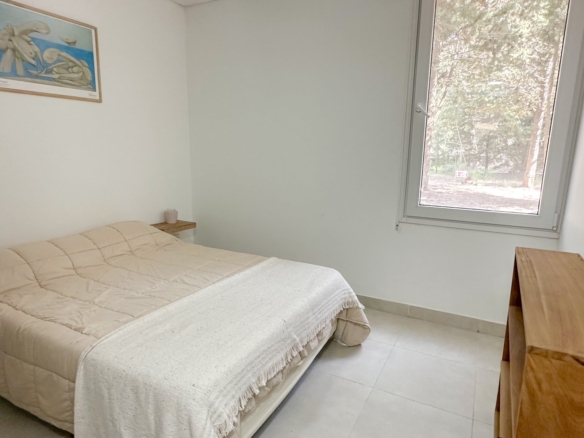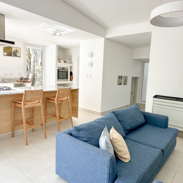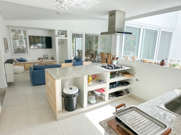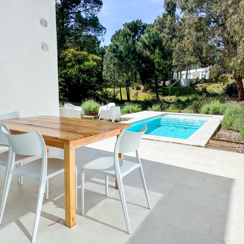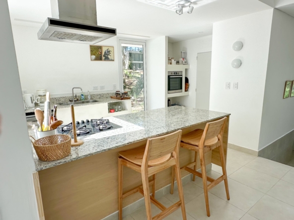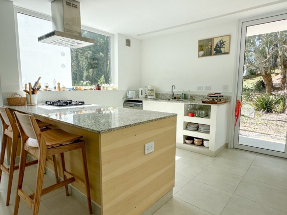 En el hermoso entorno del Barrio Bosque, encontramos esta casa minimalista, sobre un terreno de 1300m2 y rodeada de pinos y vegetacion. La casa cuenta con una amplia y moderna cocina integrada de concepto abierto, con lavadero separado y salida a parrilla exterior, con barra desayunadora, living y estar comedor con salida a a un estar al aire libre con piscina con excelente orientacion y vistas. Cuenta con 4 dormitorios y 2 baños completos, uno de ellos con ante baño. La casa es muy luminosa y sus vistas son abiertas en todas las direcciones, ya que una ventaja de este barrio es que las casas estan muy separadas una de la otra lo cual le da mucha privacidad y sensacion de estar en un bosque. Cuenta con gas natural y calefaccion por estufas que permiten disfrutar la casa todo el año. Cuenta con una terraza con vistas al jardin, piscina y bosque, ideal para disfrutar momentos. Son 135m2 cubiertos y su distribucion logra mucha comodidad para sus ocupantes. Otra gran ventaja del barrio es que son pocos lotes y estan todos construidos con lo cual no hay ni habra obras en curso. Tambien el transito de vehiculos incluso en temporada alta es casi nulo. El acceso de la ruta es excelente lo cual es genial para Costa Esmeralda que es tan grande, termina siendo muy practico. Cuenta con una proveeduria muy cerca a la cual se puede llegar caminando. El acceso a la playa es a 10 minutos por vias principales de muy facil llegada. Se vende por viaje al exterior y se escuchan propuestas serias