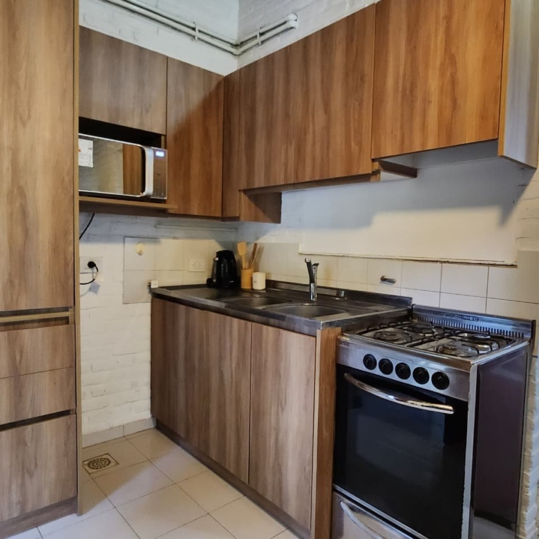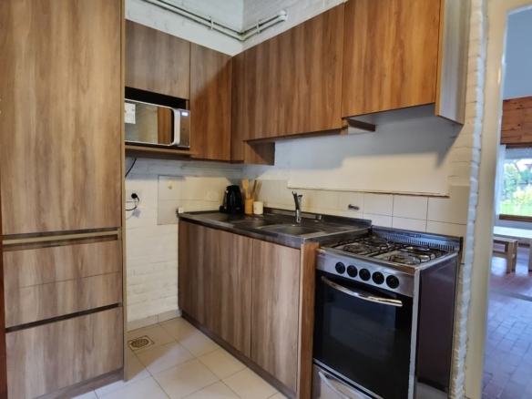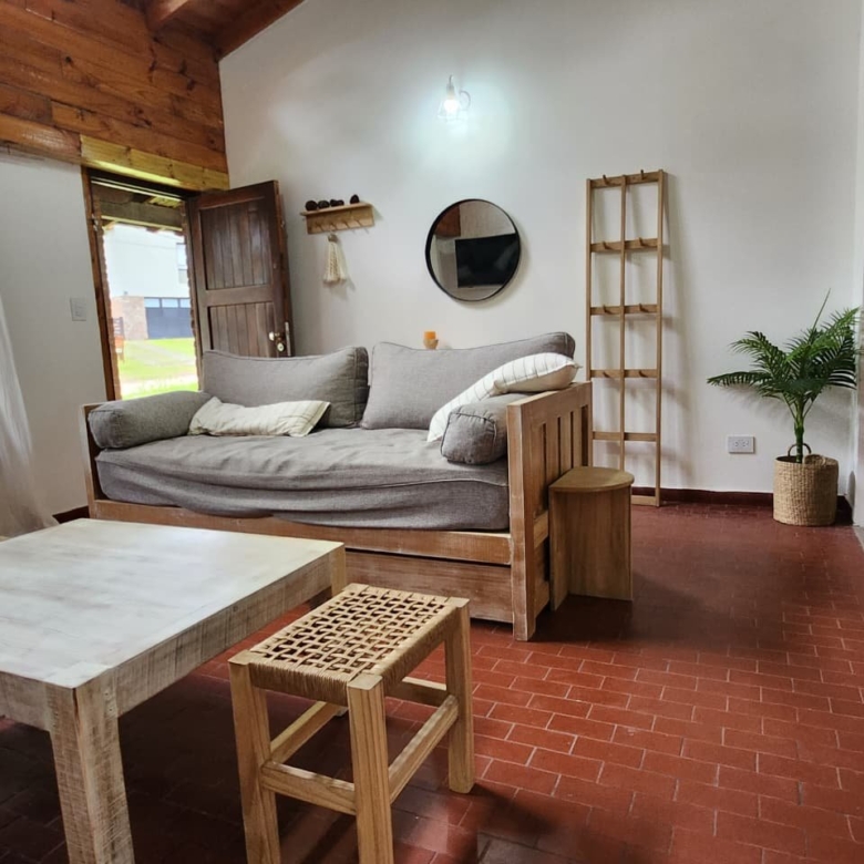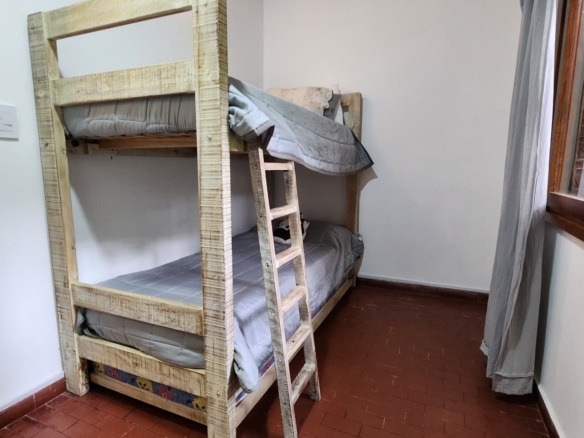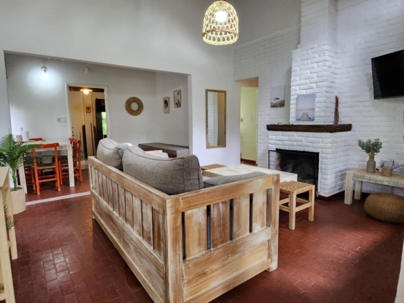 Cuenta con 3 dormitorios, 2 baños, living amplio con sofá cama.