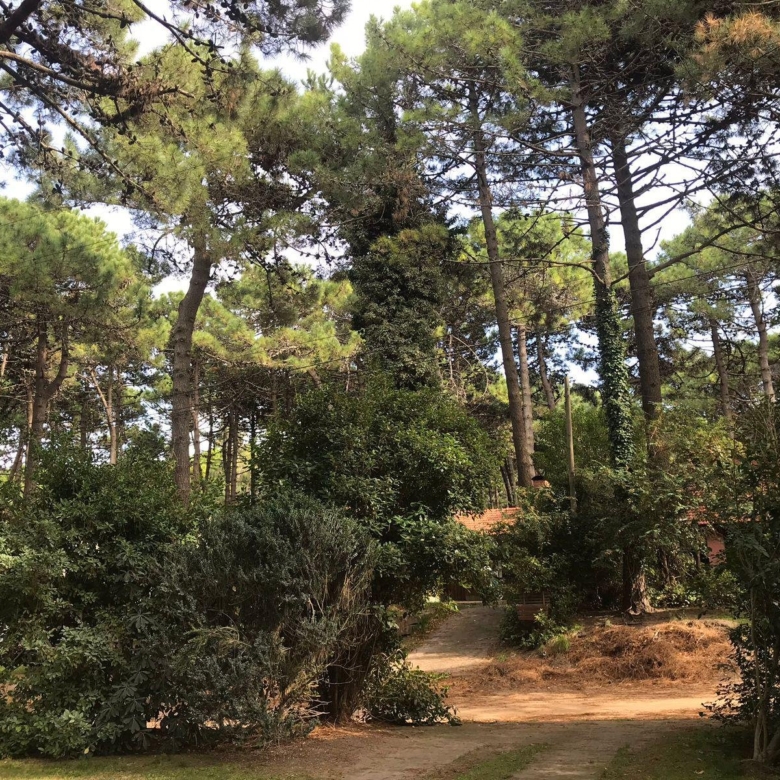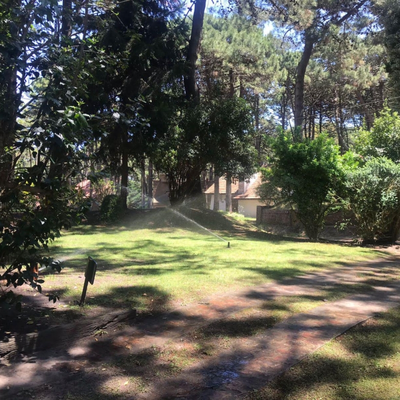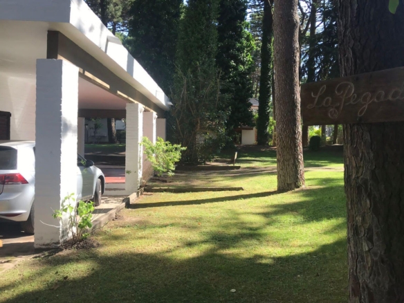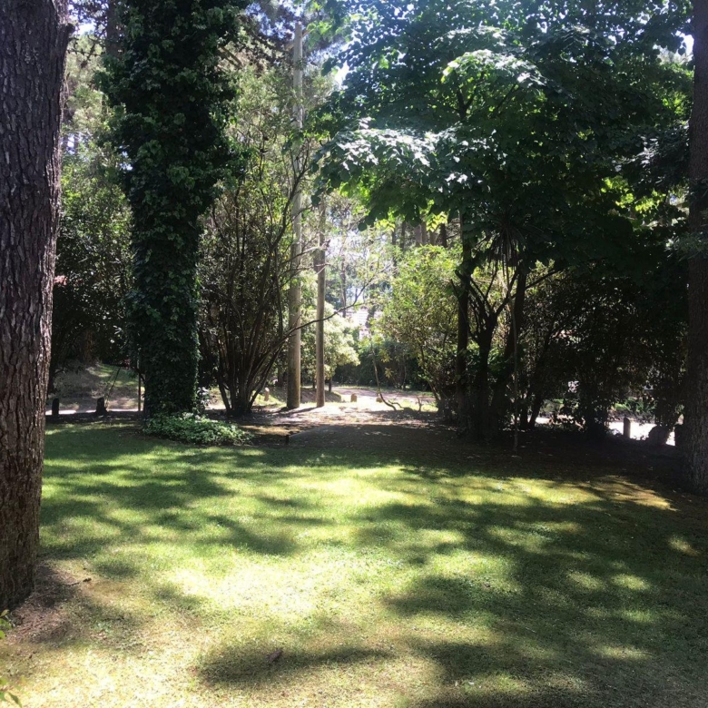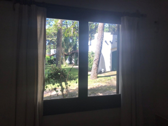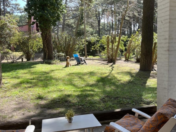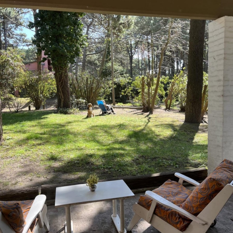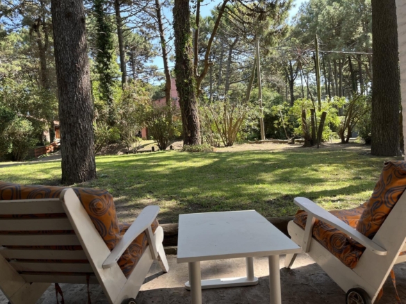La casa tiene 140 m2. El parque 900 m2, con 18 pinos y más plantas. Mucha vegetación, pájaros, de noche se llega a escuchar el mar.