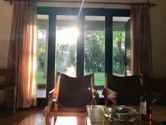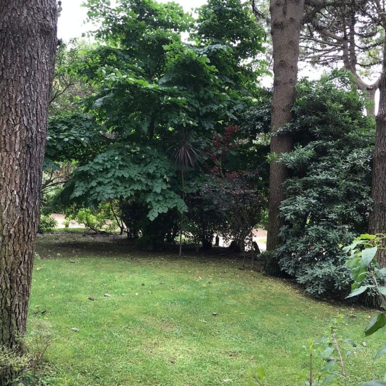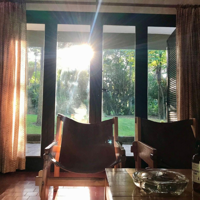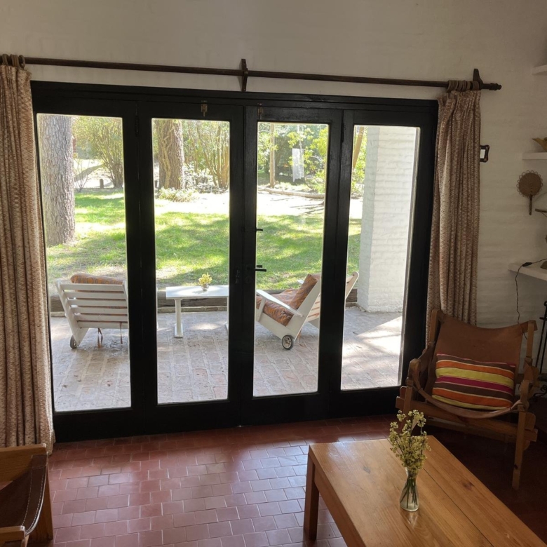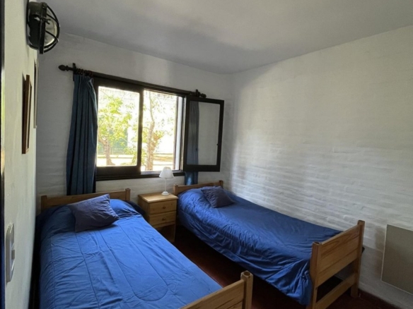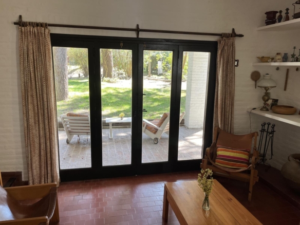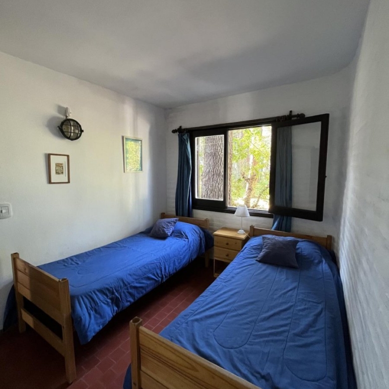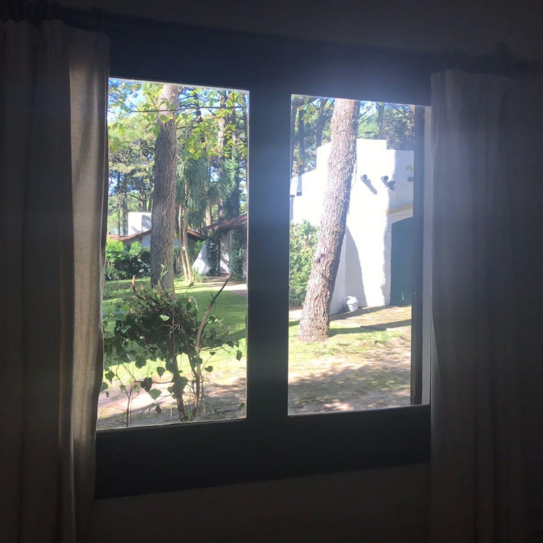 La casa tiene 140 m2. El parque 900 m2, con 18 pinos y más plantas. Mucha vegetación, pájaros, de noche se llega a escuchar el mar.