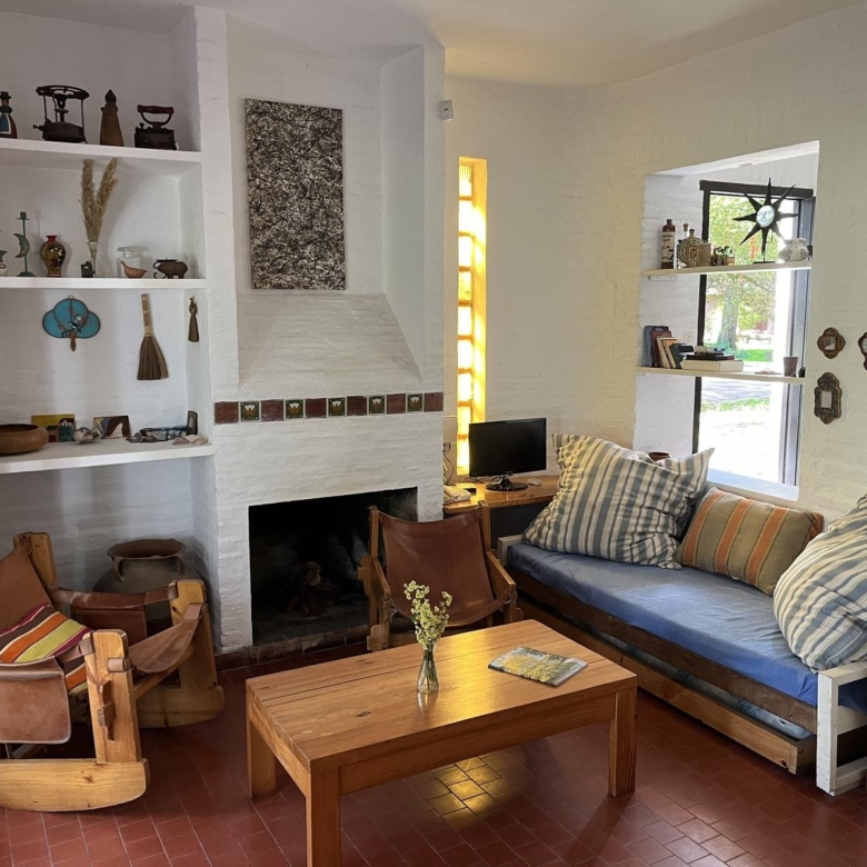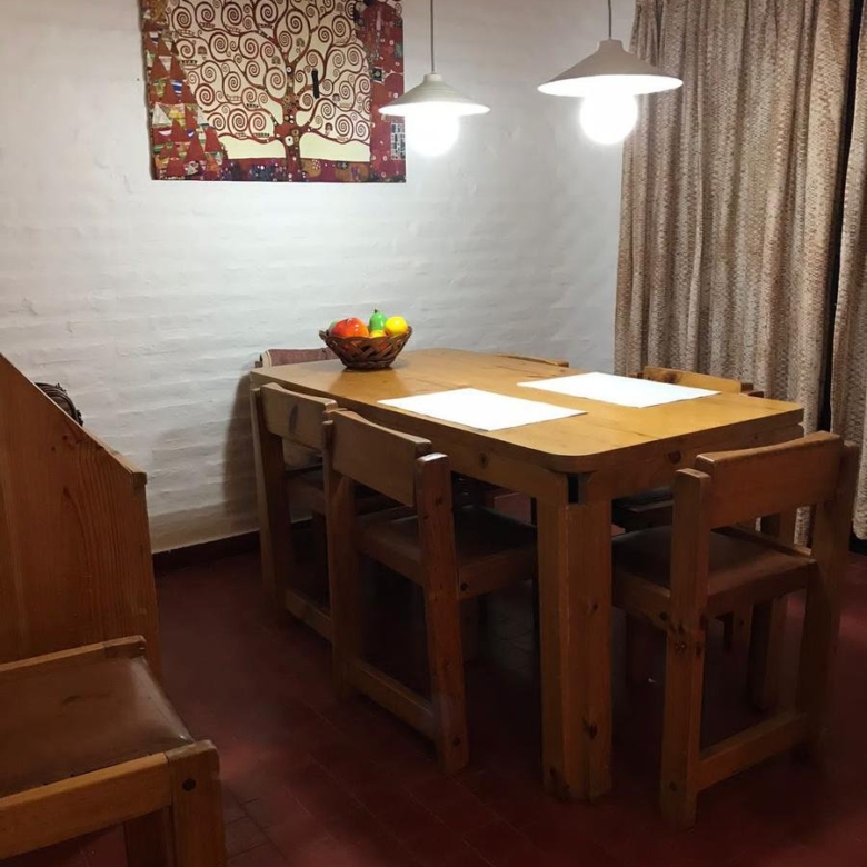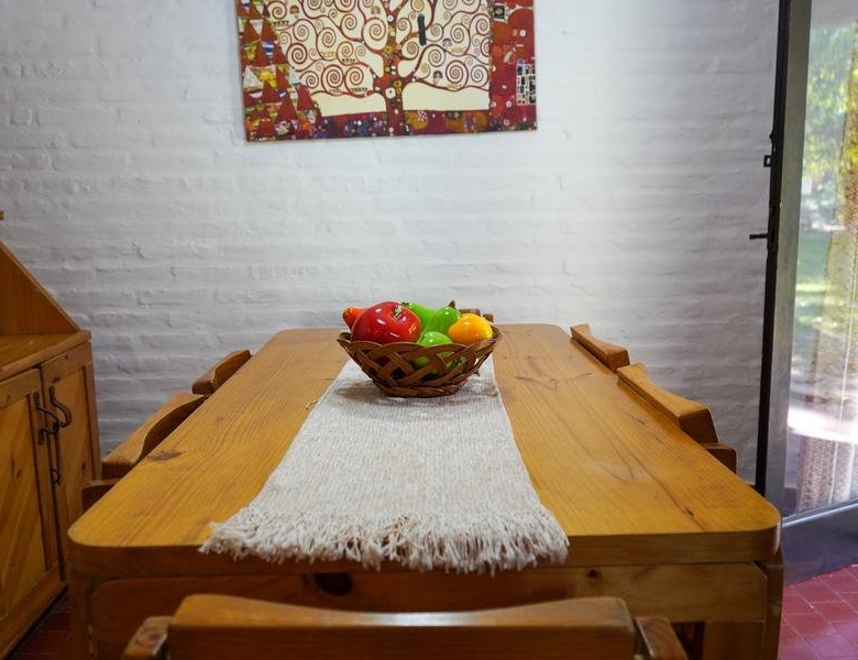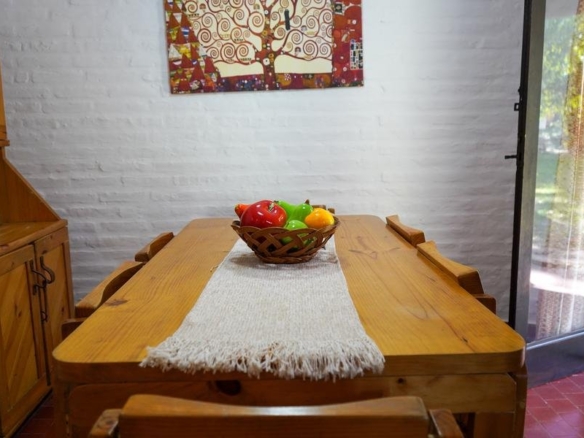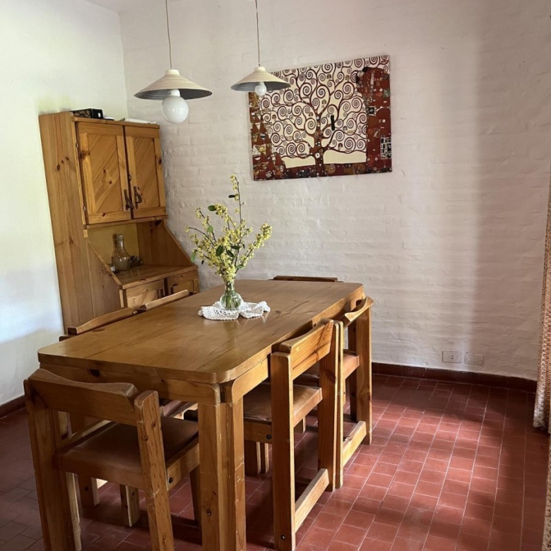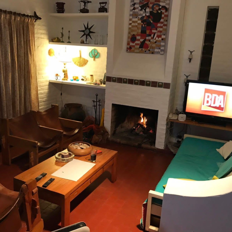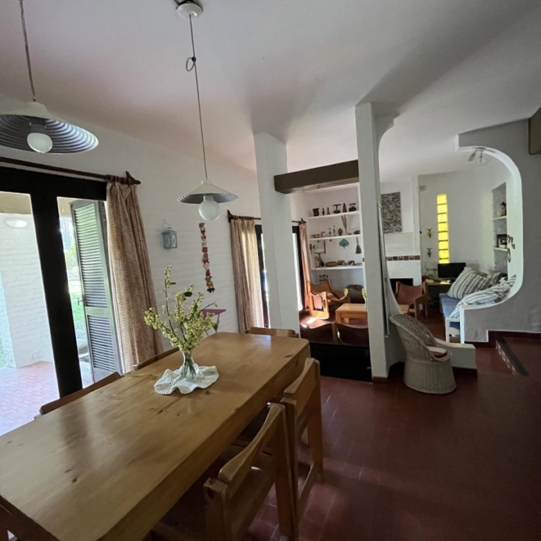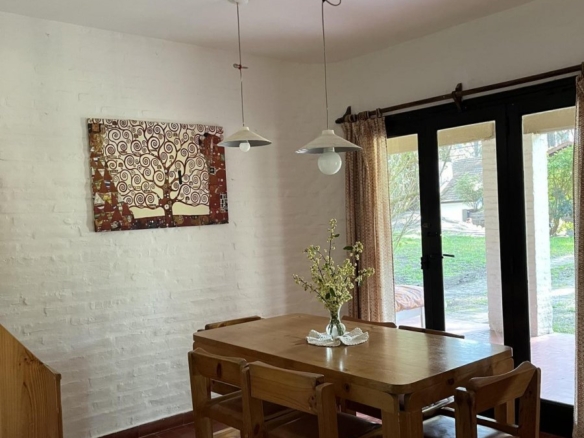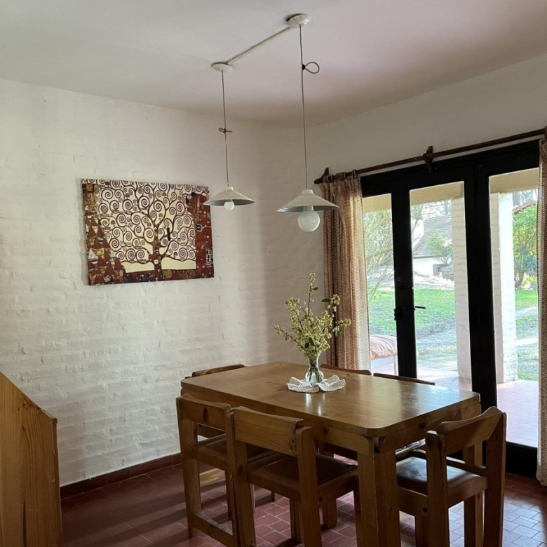 Living y comedor con amplia salida en continuado al jardín. En el living hay otra cama más.