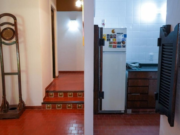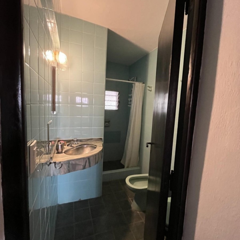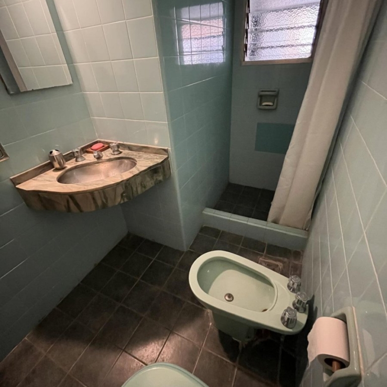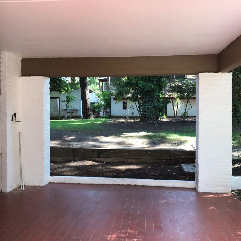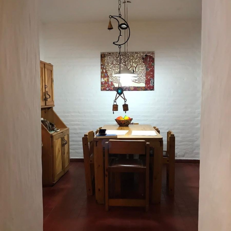Recientemente pintada de blanco con las aberturas de toda la casa en madera oscura. Pisos de cerámica bordó.