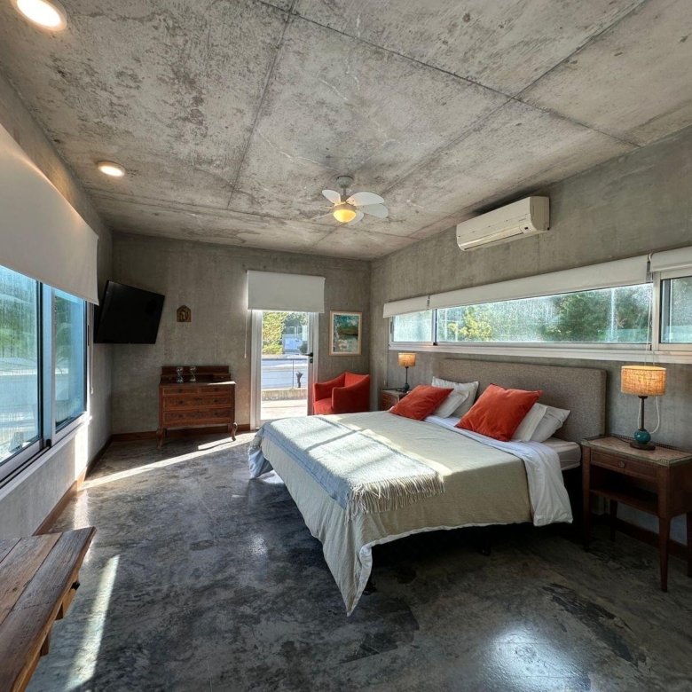 Construida en hormigón visto con un estilo contemporáneo y elegante, esta casa ofrece ambientes amplios, luminosos y totalmente equipados para disfrutar todo el año.