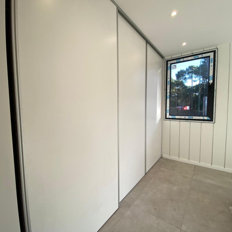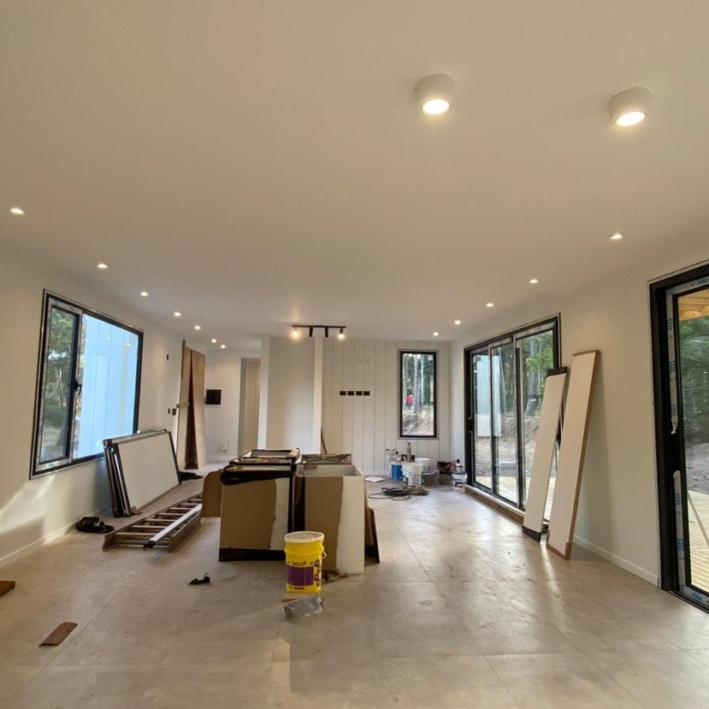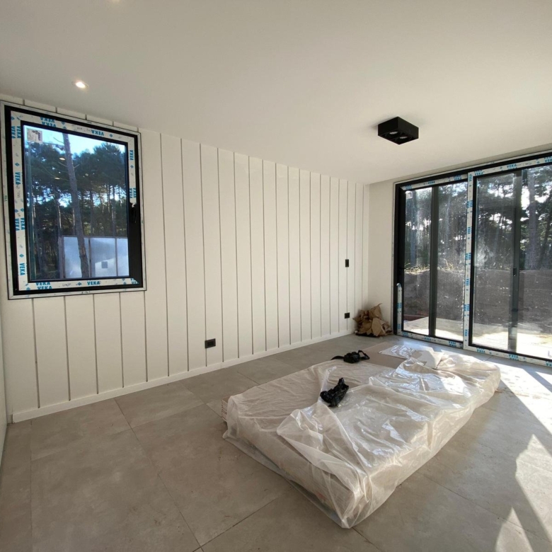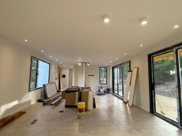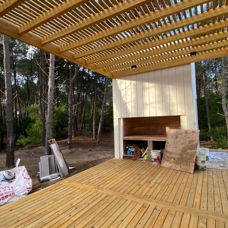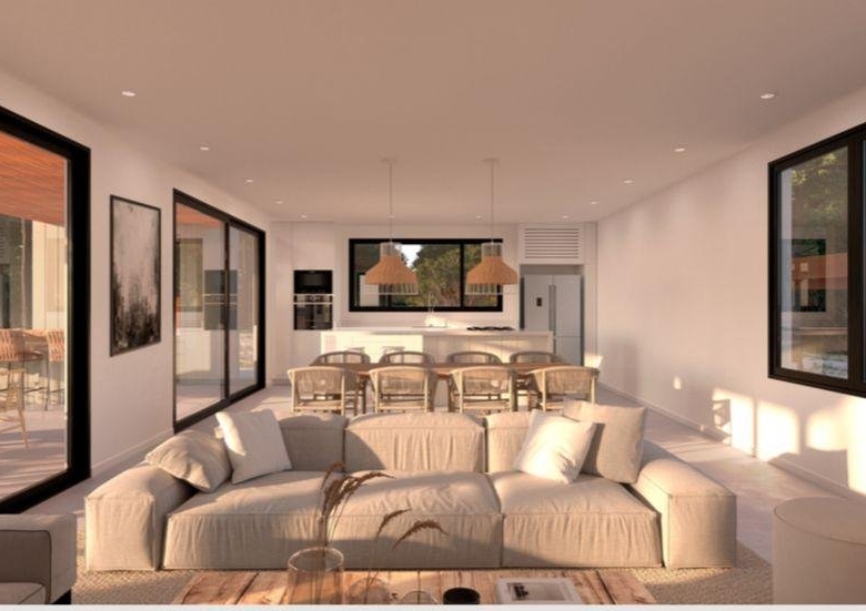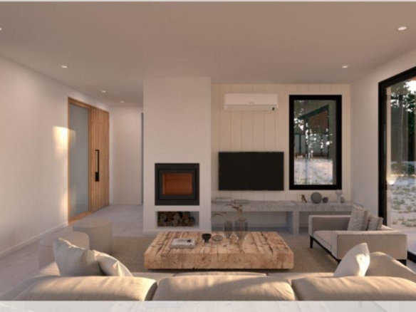 • Living-Comedor: Un espacio amplio con grandes ventanales que permiten vistas panorámicas al bosque, llenando el ambiente de luz natural.
