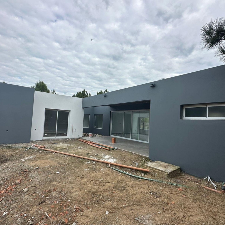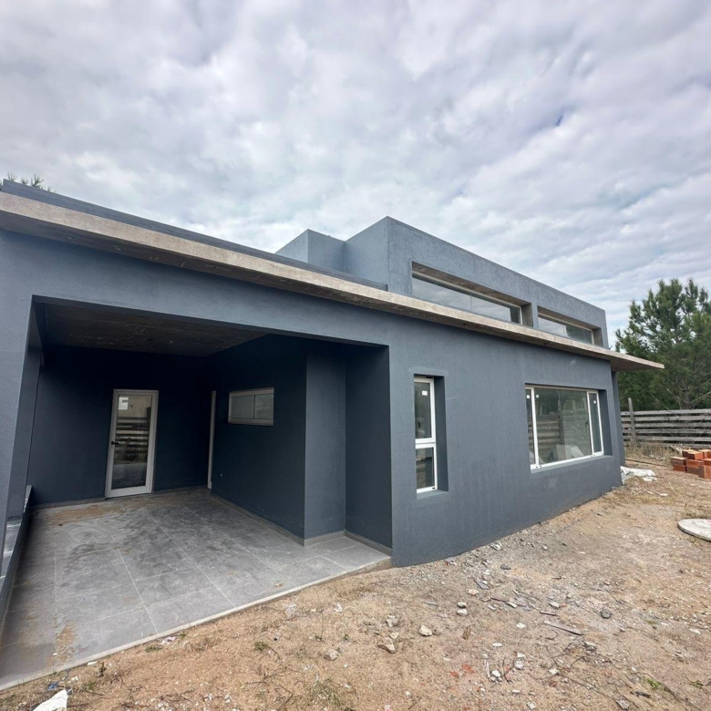 Moderna propiedad en Costa Esmeralda, esta misma posee tres dormitorios, el principal en suite con vestidor, Dos baños completos con ante-baño y Toilette. Cocina living comedor con amplio ventanal, gran galería con parrilla, lavadero, espacio guarda coche cubierto, aberturas de aluminio color blanco DVH.