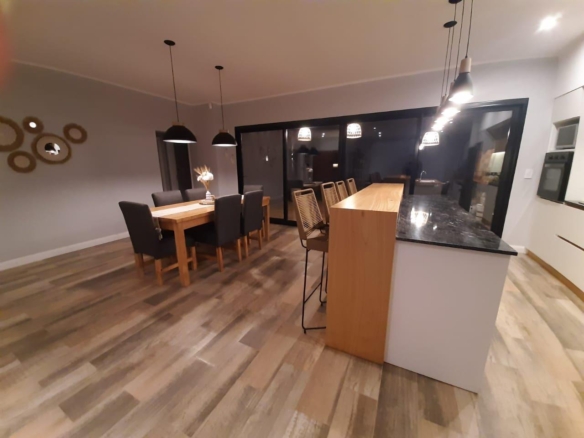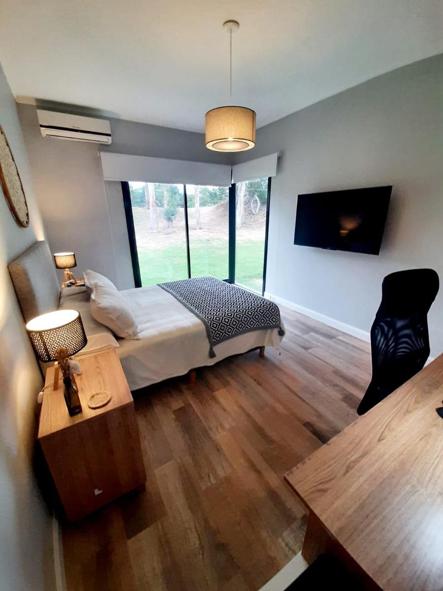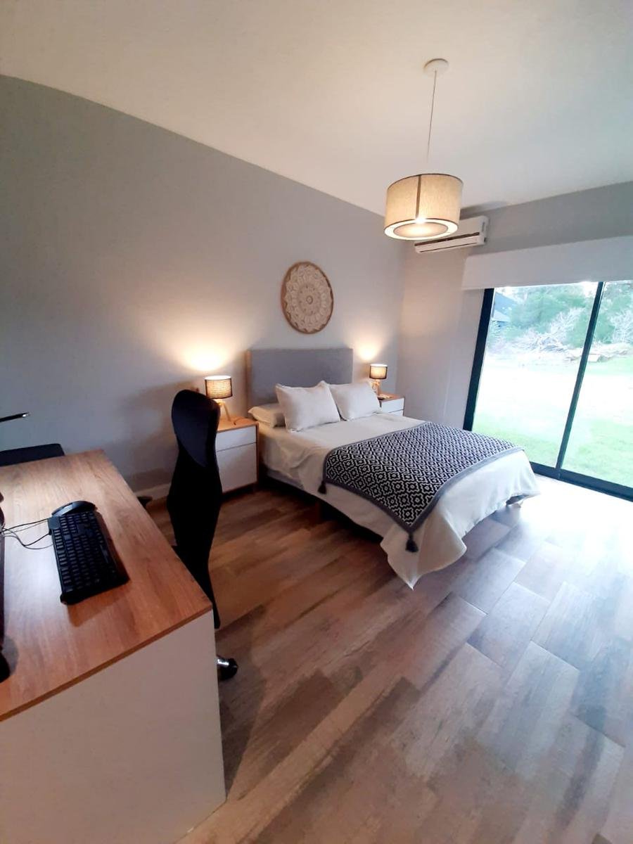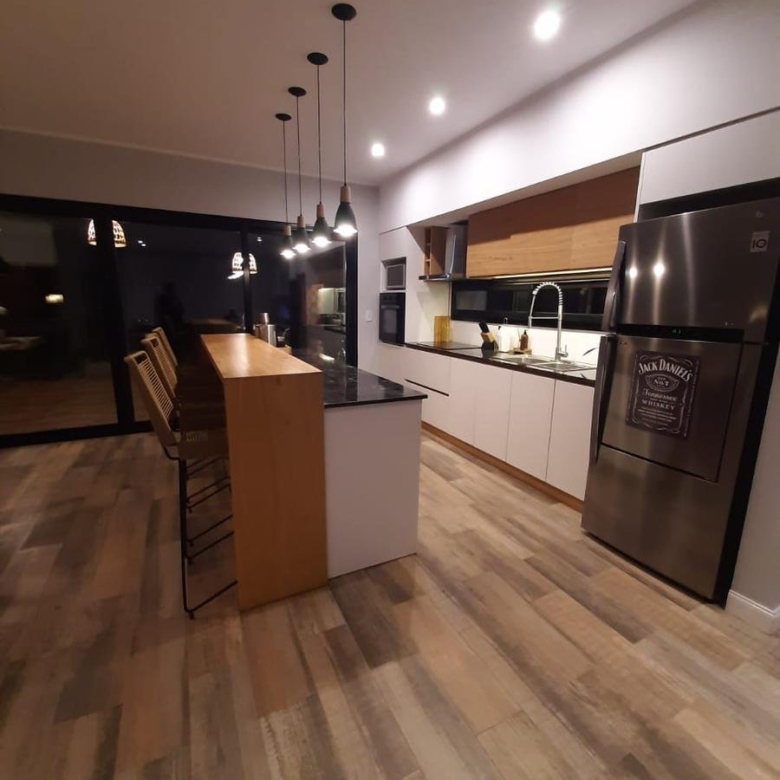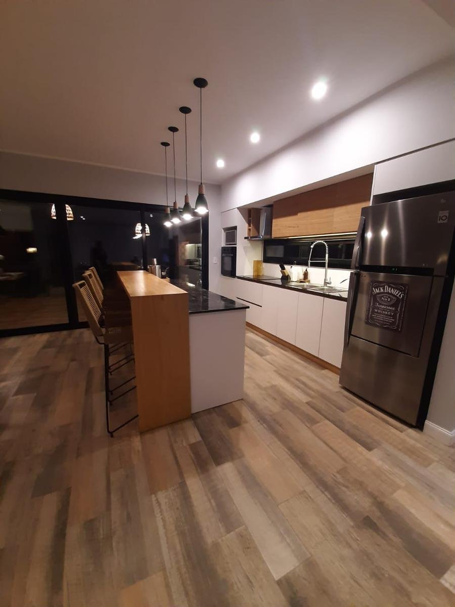 Moderna casa construida en una unica planta. Diseño minimalista y amplios ventanales. Consta de 3 dormitorios, prinicpal en suite con vestidor. La misma tiene dos baños y un toilette de recepcion. Cocina, living-comedor integrado con salida a la galeria semi cubierta y lavadero exterior.