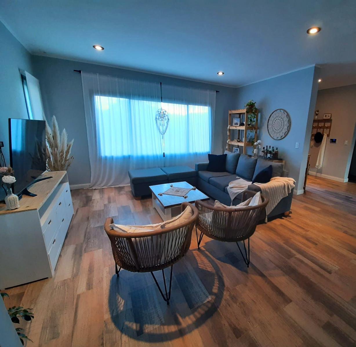 Aberturas dvh negras doble vidrio moderna y A30 en living