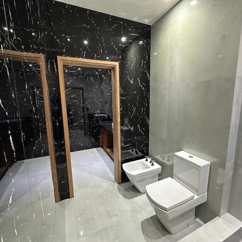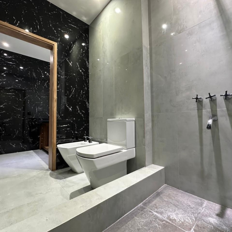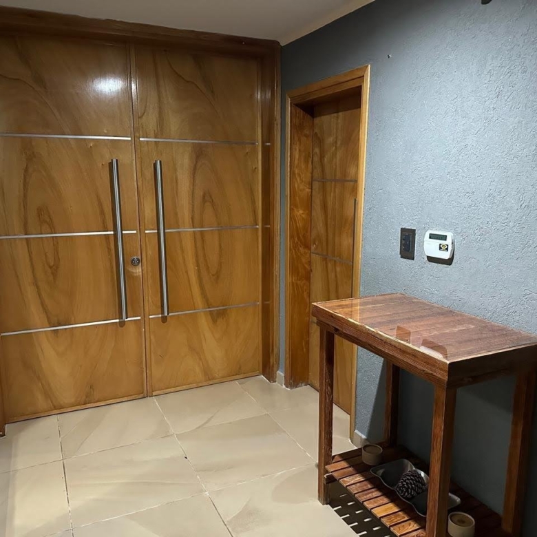Desde el living, un pasillo nos lleva a un toilette. En este sector también se encuentra la central de alarmas y el sistema de cámaras de seguridad para el monitoreo de la propiedad.