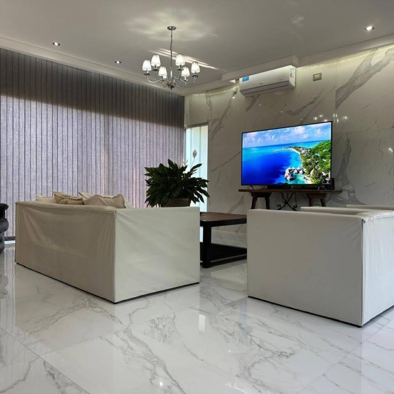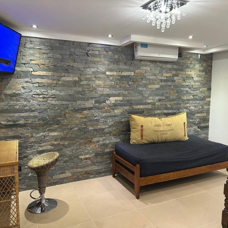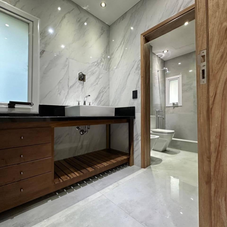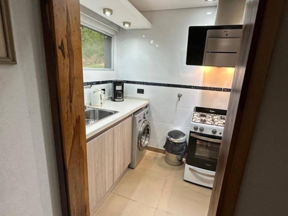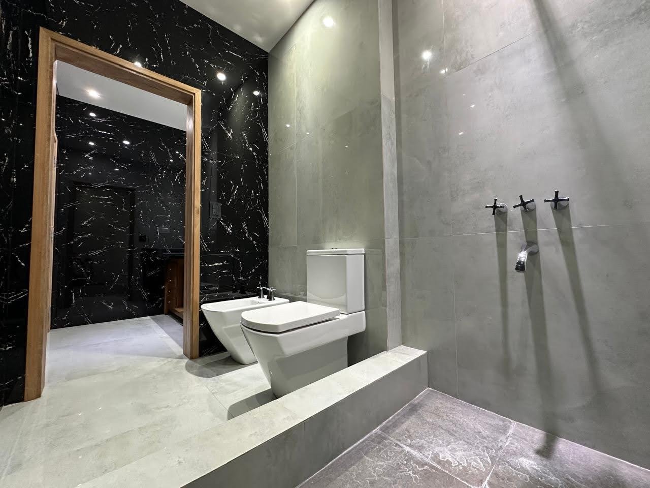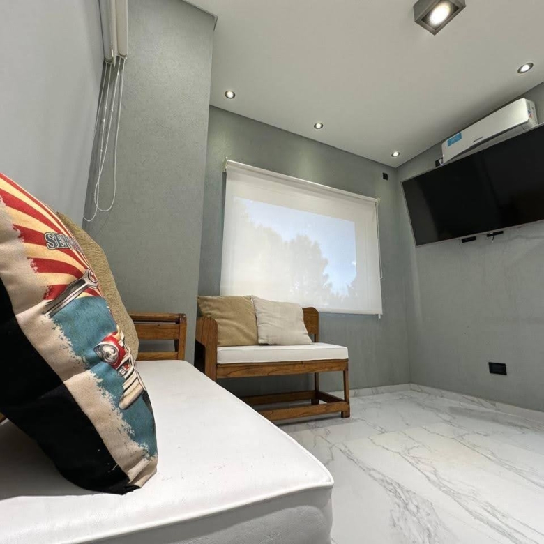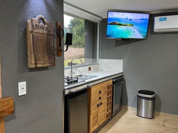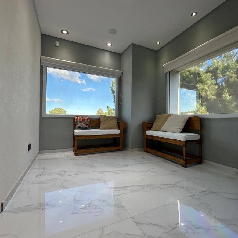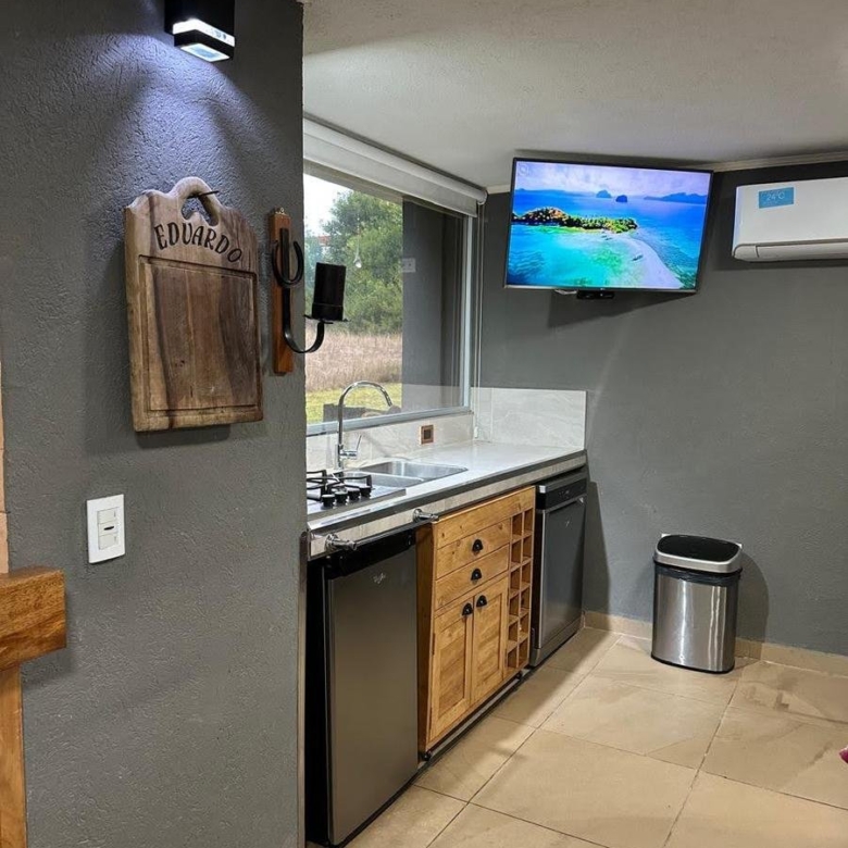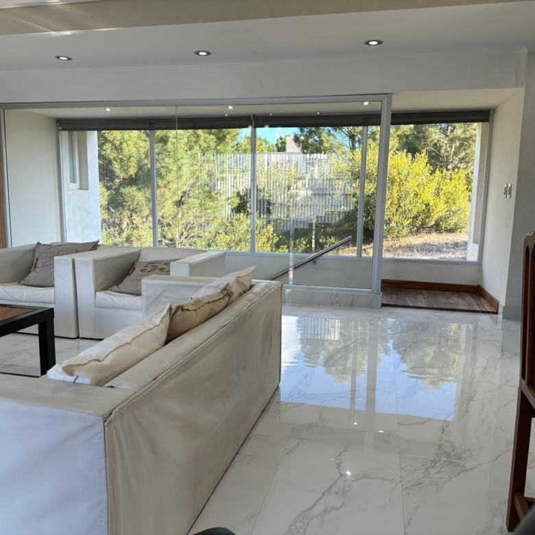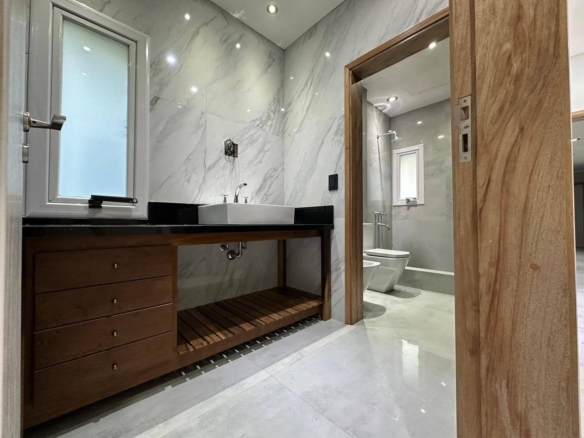 Si vienes de la playa y no quieres entrar con arena, la casa cuenta con un baño completo exterior. Desde allí se accede a un hall de ingreso que conecta con tres espacios principales: Quincho con parrilla (a gas y a leña) y cocina de invierno. Este ambiente es adaptable para guardar dos vehículos, ya que sus amplias ventanas se abren por completo, integrándose con las cocheras exteriores. Área de descanso con una amplia habitación servida por un baño completo. Inmediatamente después, encontramos un estar ideal para relajarse, que puede convertirse en habitación según las necesidades. Cocina independiente, con salida al exterior, que conecta con la zona de servicios: sala de máquinas, sistema de riego y espacio de guardado.