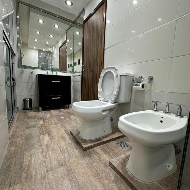 Losa radiante en todos los ambientes, independiente por planta, con caldera individual.