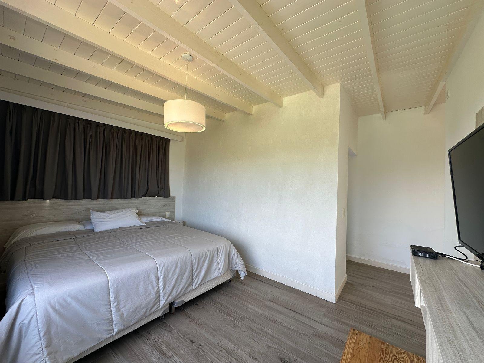 2 habitaciones amplias que comparten baño, 1 de ellas cuenta con balcón y vista a la piscina.
