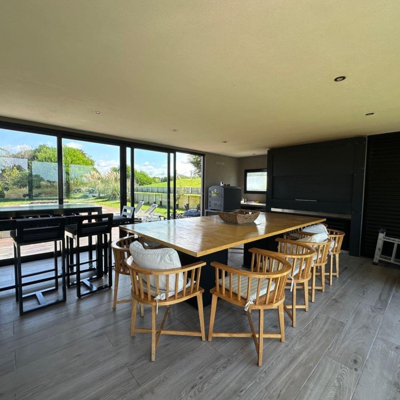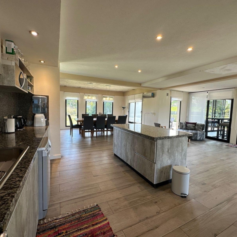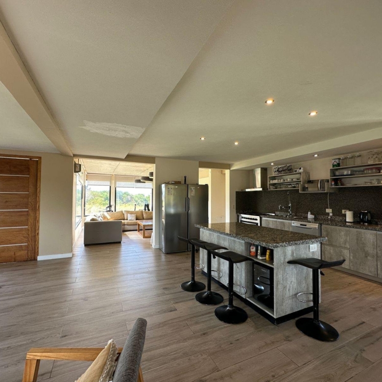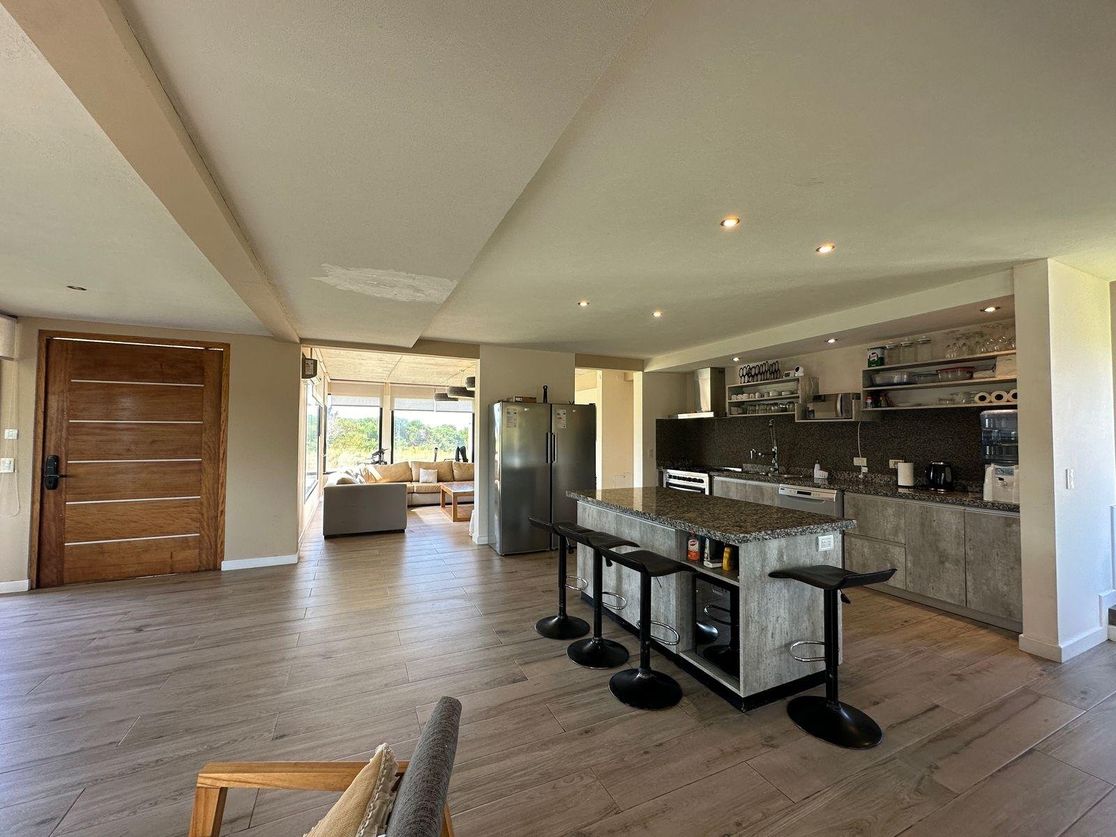 Este se conecta con la cocina, moderna y muy bien equipada, barra desayunadora y cómodo comedor.
