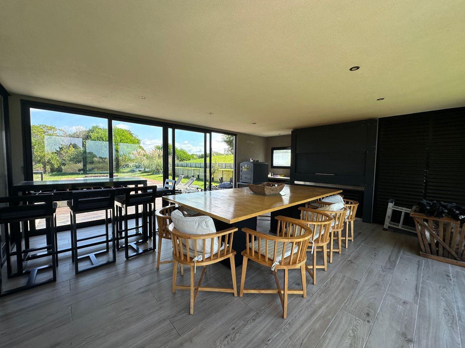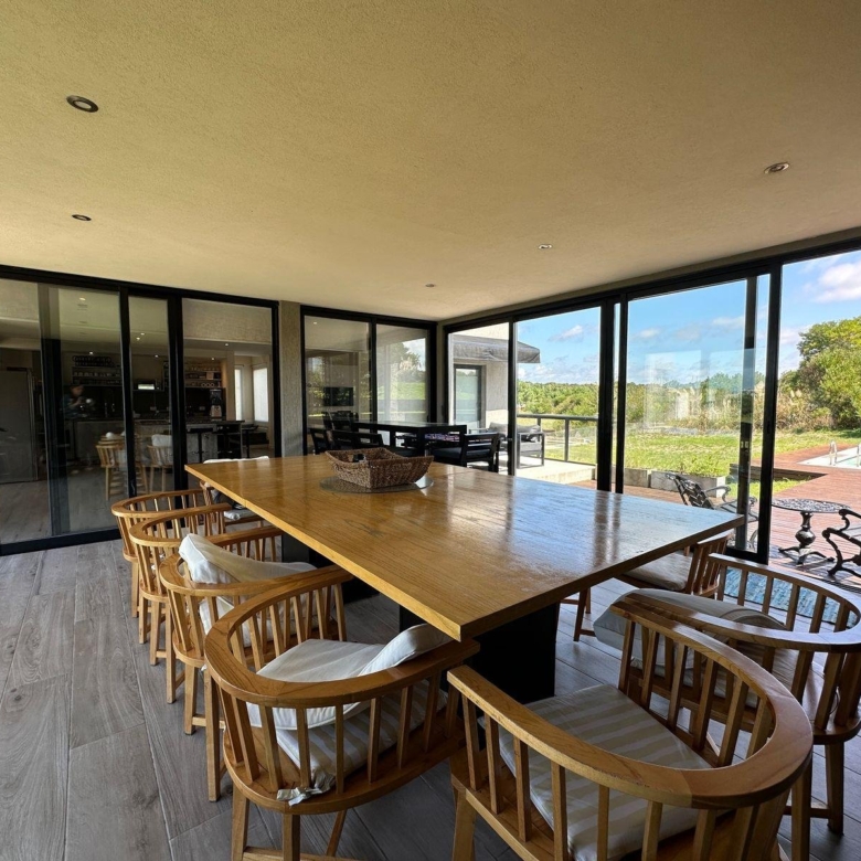 Este ambiente tiene salida a una galería vidriada , cubierta con parrilla ,salida al parque y piscina .