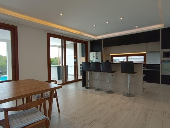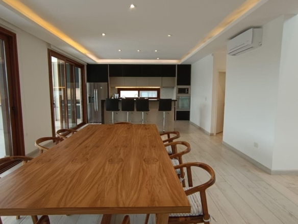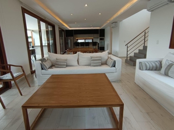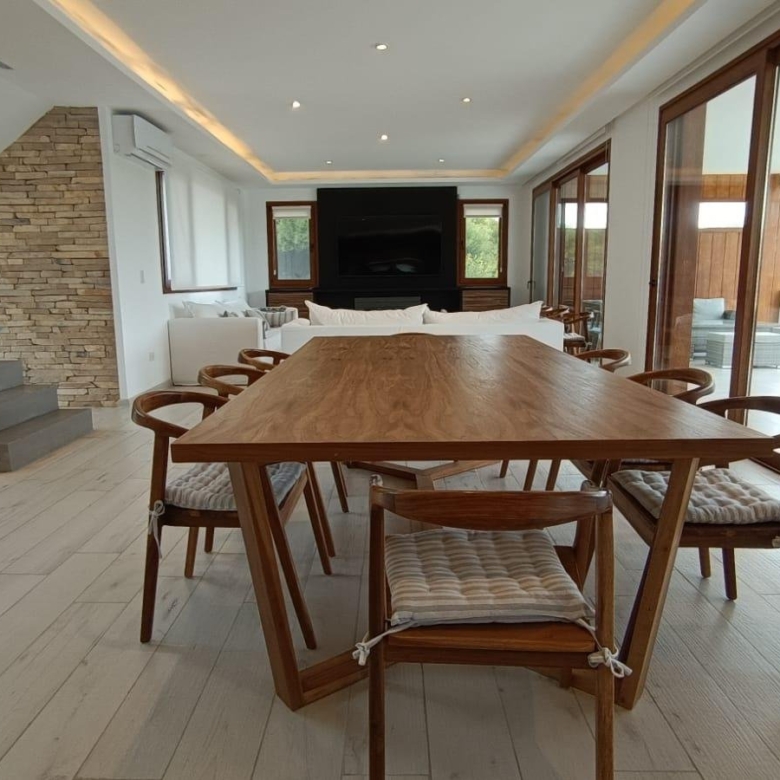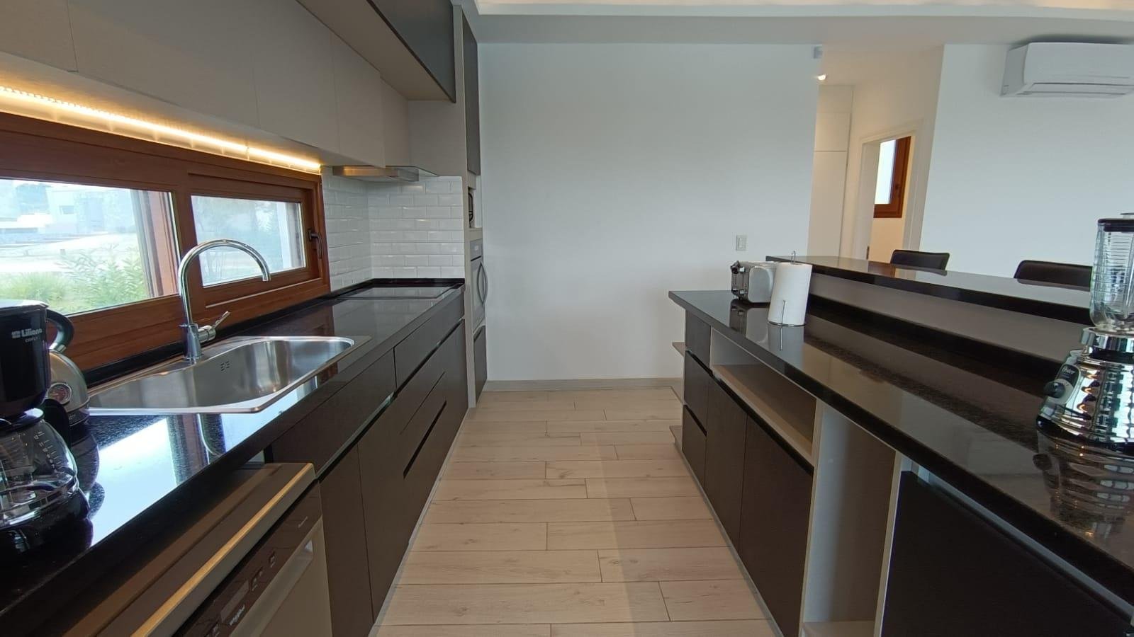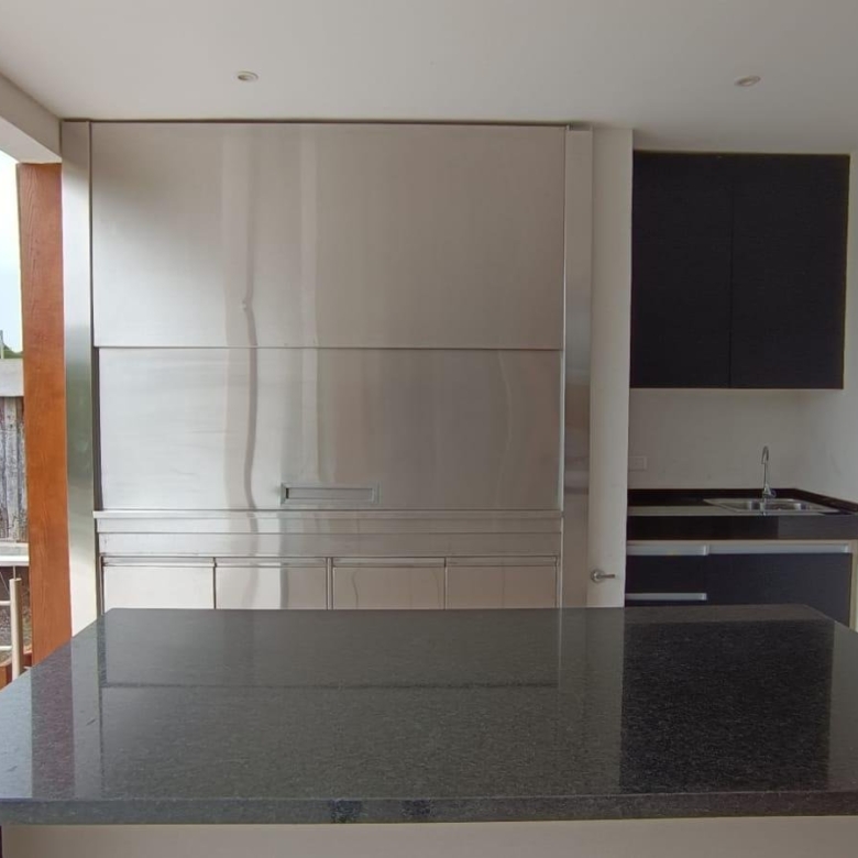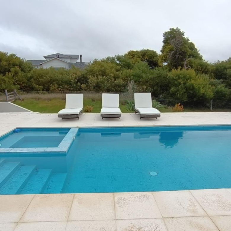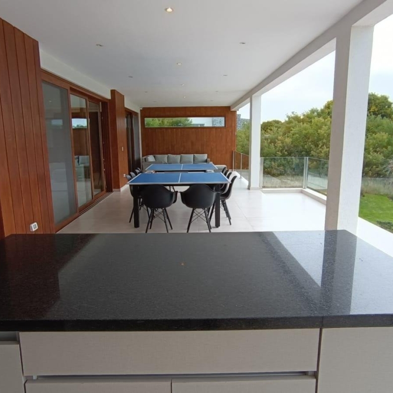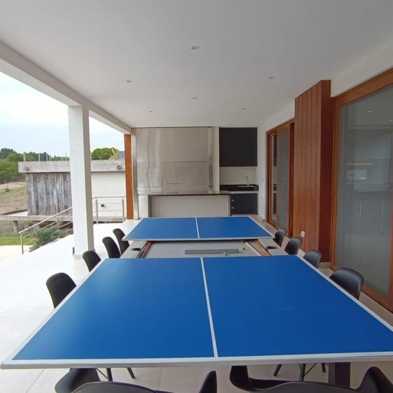 En Planta Baja, podemos disfrutar de dos amplias cocheras. Posee un acceso estilo moderno que nos invita a disfrutar sus espacios interiores, un amplio living-comedor con cocina con isla central con vistas al exterior dando esa sensacion de espacio abierto; con un toillet y lavadero. Un espacio para disfrutar al aire libre es la galeria que posee una parrilla para leña y parrilla a gas, que se conecta directamente con una pileta climatizada, que posee un solarium de gran amplitud, servido por dos duchas exteriores.