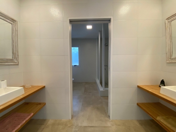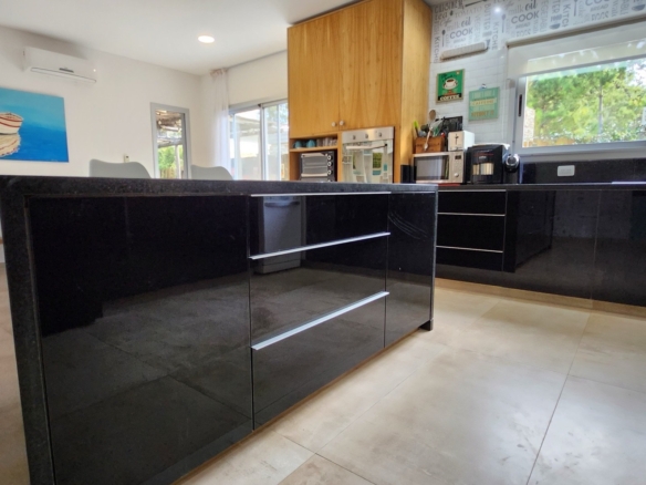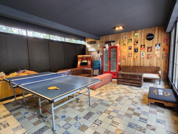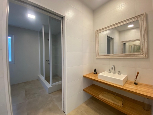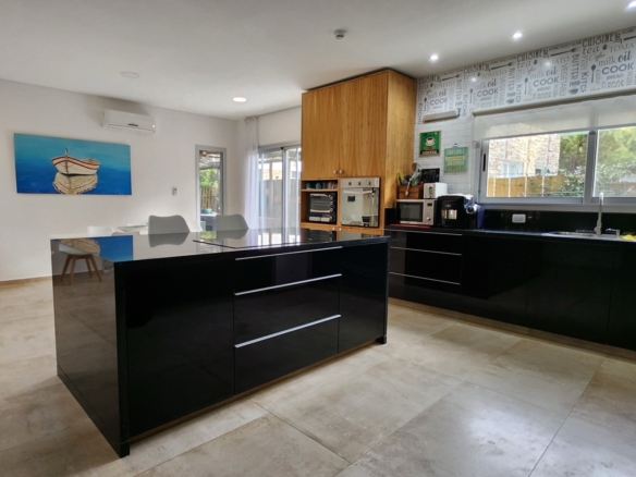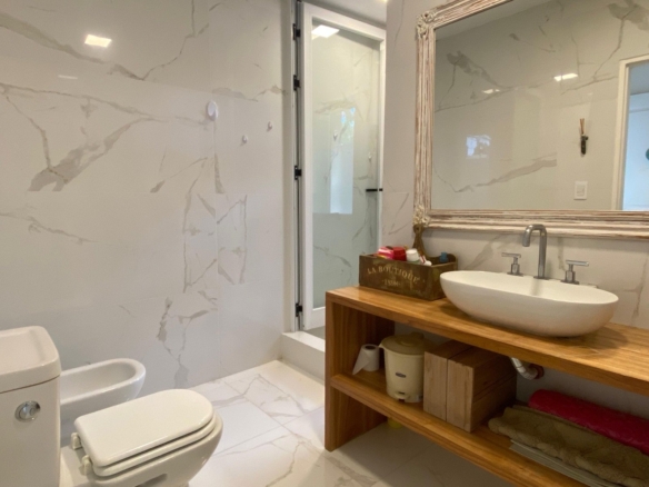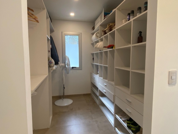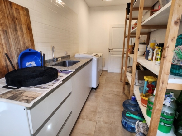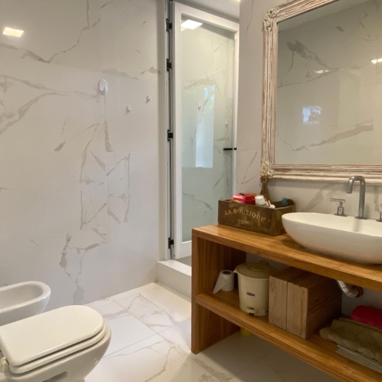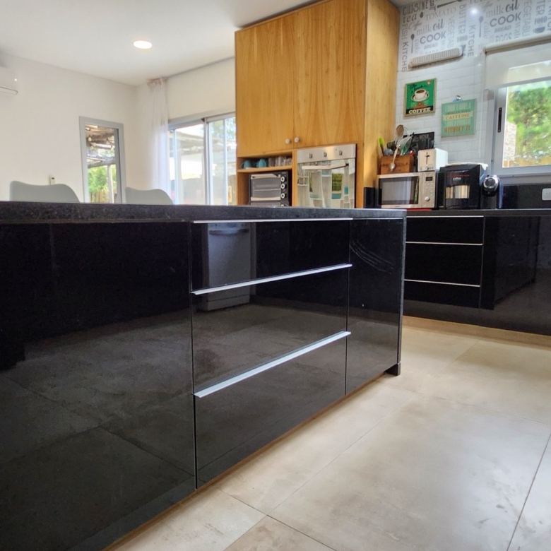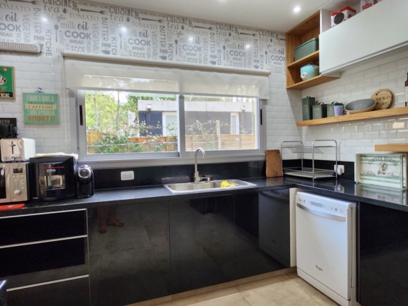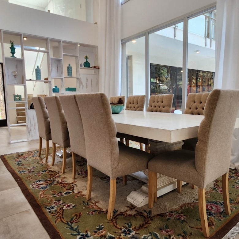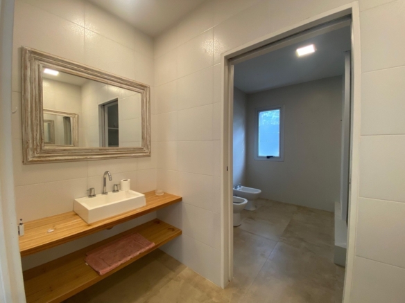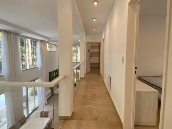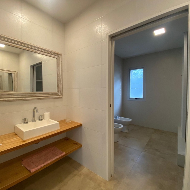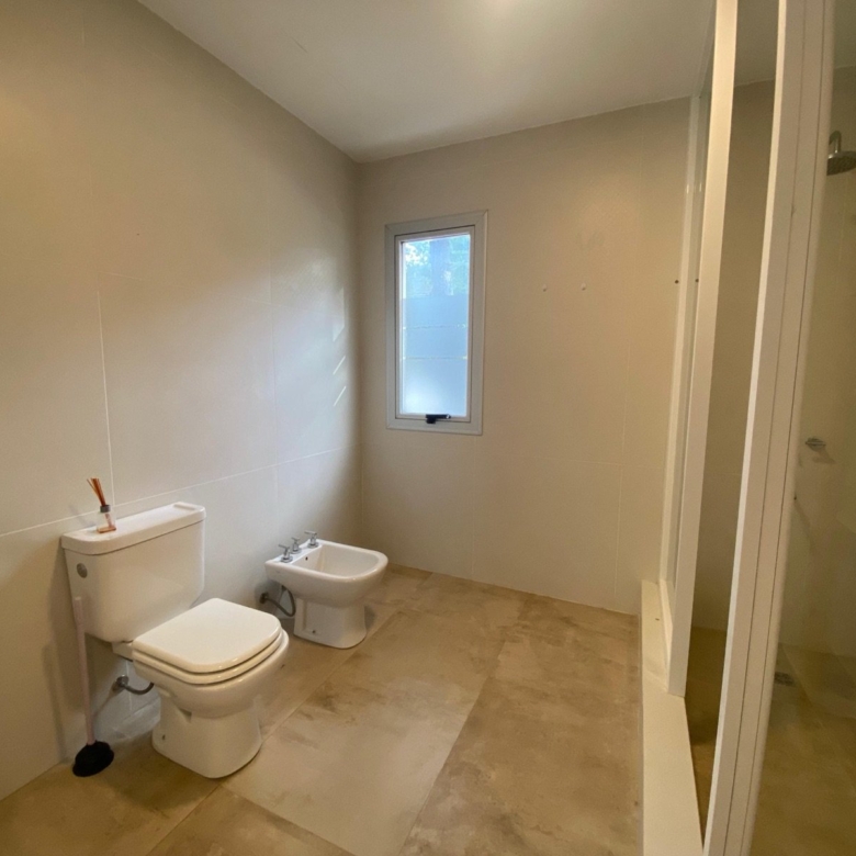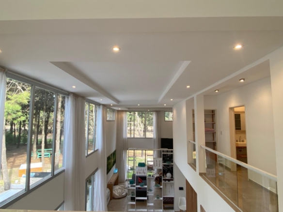 La casa cuenta con 5 dormitorios, uno de ellos en suite, y un total de 4 baños completos. Su living comedor se destaca por su luminosidad y conexión con el parque. La cocina, amplia y funcional, está integrada a un lavadero independiente.