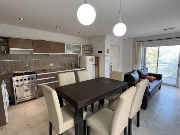 Cuenta con un amplio living-comedor, cocina integrada, un baño completo y dos dormitorios, aire acondicionado individual.