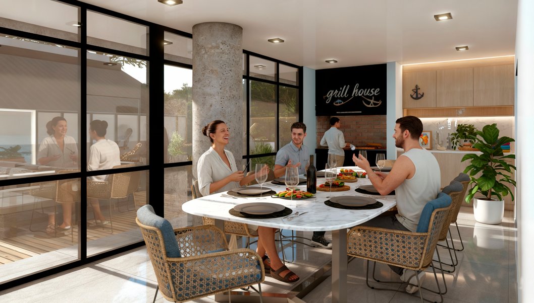Amenities: terraza con solárium, parrillas, SUM y espacios de relax.