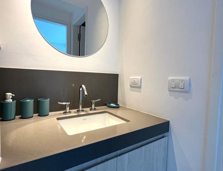 Dormitorio con sommier, LCD y caja fuerte. Baño completo con ante baño.