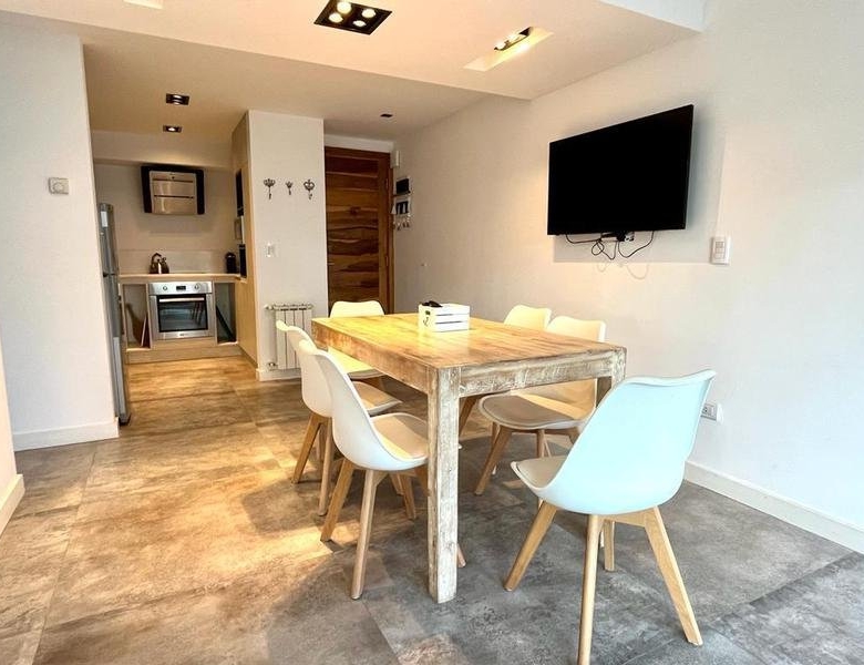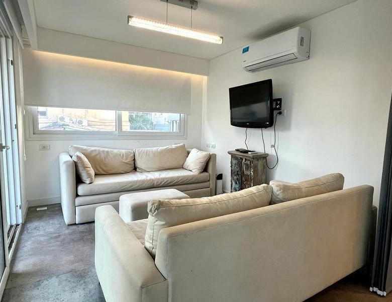 2 ambientes. Cuenta con cocina equipada, living – comedor, dos sillones, 2 camas, cortina para dividir los ambientes.