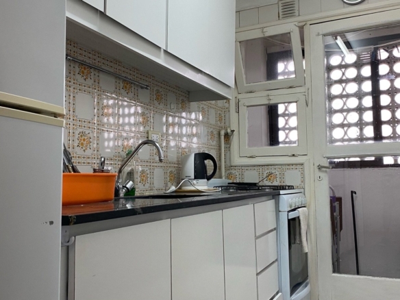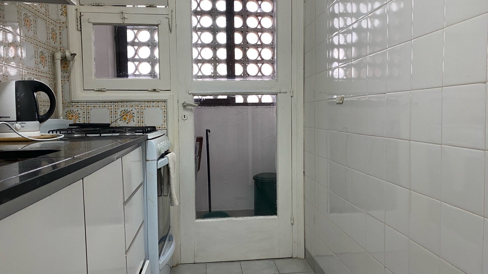 Un dormitorio, comedor, cocina, lavadero, balcón con vista al mar, gas natural, dos ascensores.