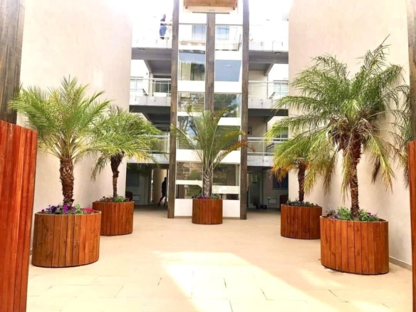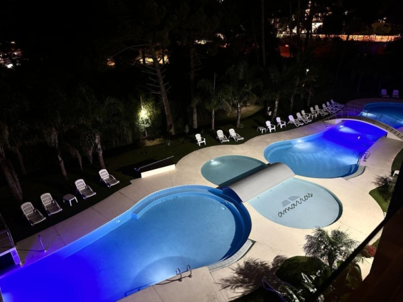 El complejo cuenta con una hermosa piscina exterior de unos 65 metros de largo rodeada de hermosa jardinera y vegetación.