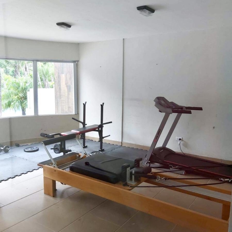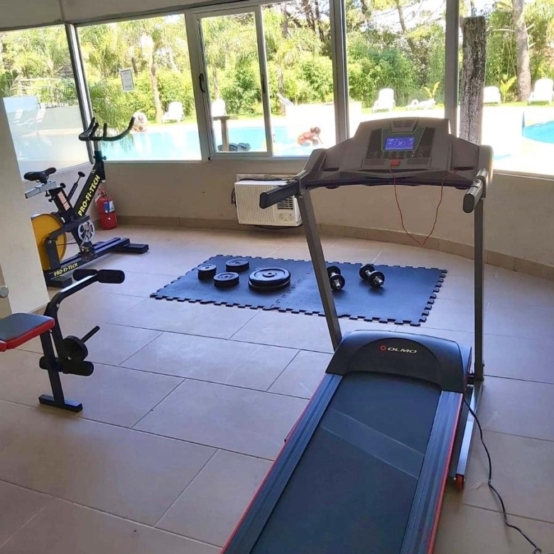 Gimnasio con vista al parque