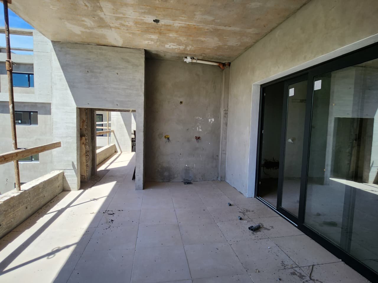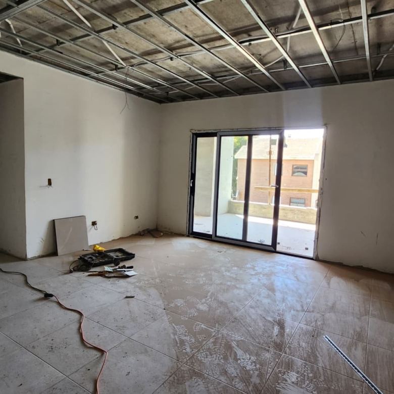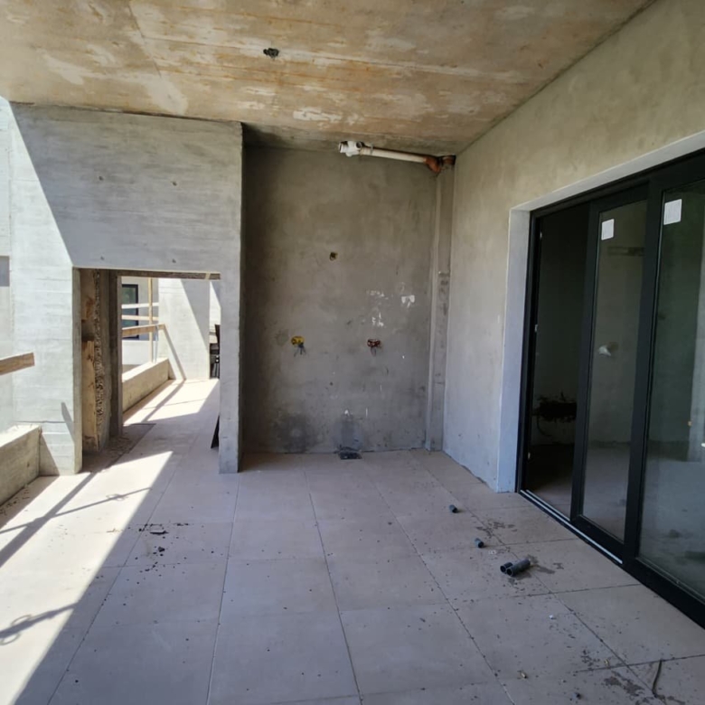 Terminaciones: piso y zócalo de porcelanato, revestimiento cerámico en baños y cocina, cocina con barra según dpto.: equipada con bajo mesadas en melamina, mesadas de granito, grifería de mesada Piazza o similar, pileta de acero inoxidable, anafe y horno eléctricos. Termotanque eléctrico para agua caliente.