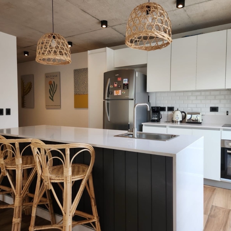 Cocina completa con isla tipo desayunador