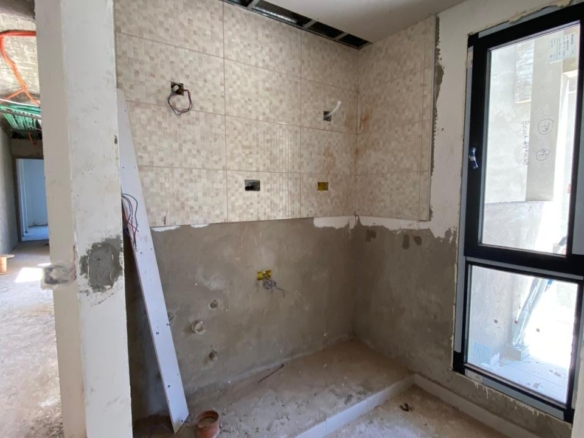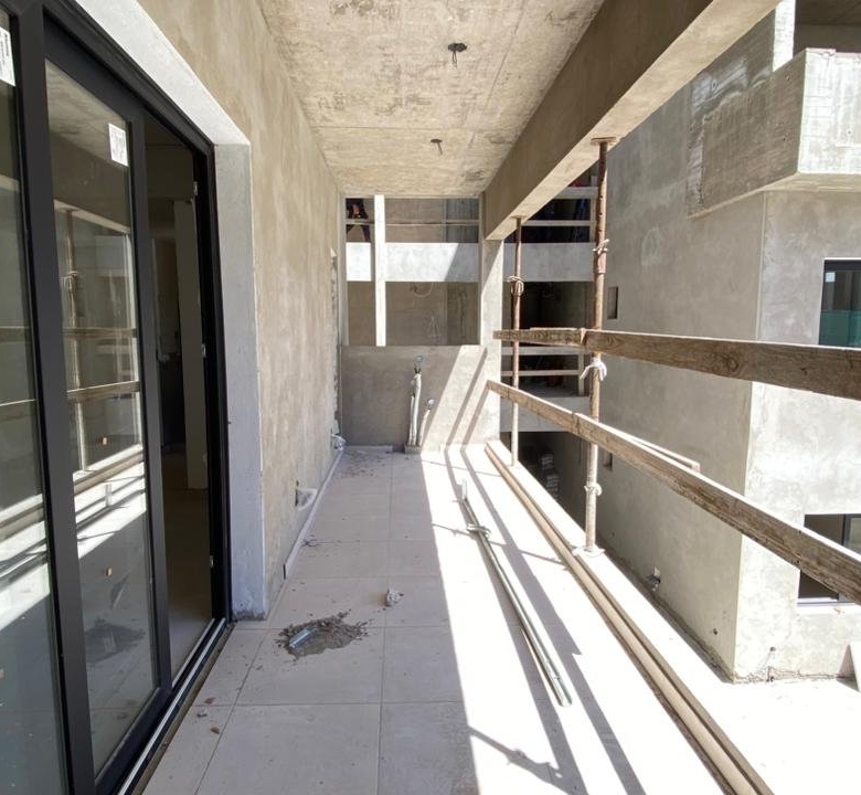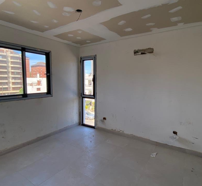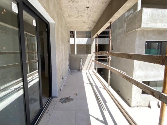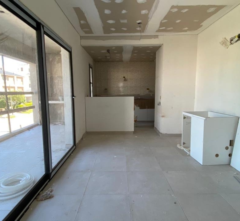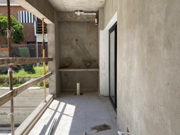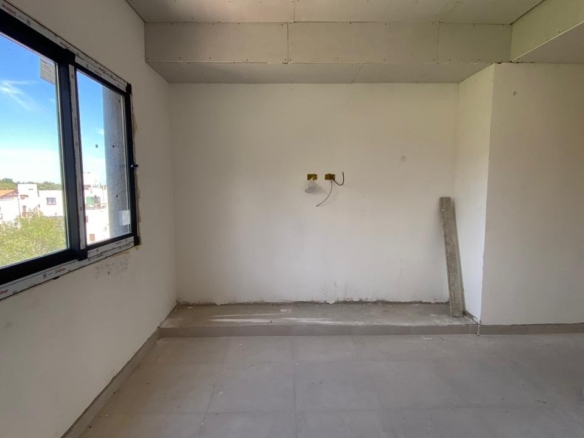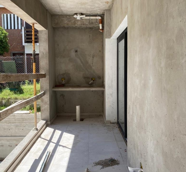 Terminaciones: piso y zócalo de porcelanato, revestimiento cerámico en baños y cocina, cocina con barra según dpto.: equipada con bajo mesadas en melamina, mesadas de granito, grifería de mesada Piazza o similar, pileta de acero inoxidable, anafe y horno eléctricos. Termotanque eléctrico para agua caliente.