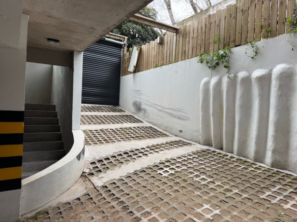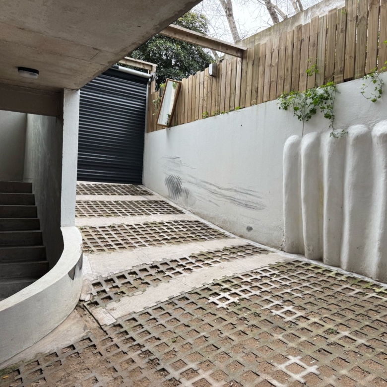 Cochera fija con portón eléctrico y baulera cerrada con capacidad para guardar hasta dos cuatriciclos, un auto y un UTV.