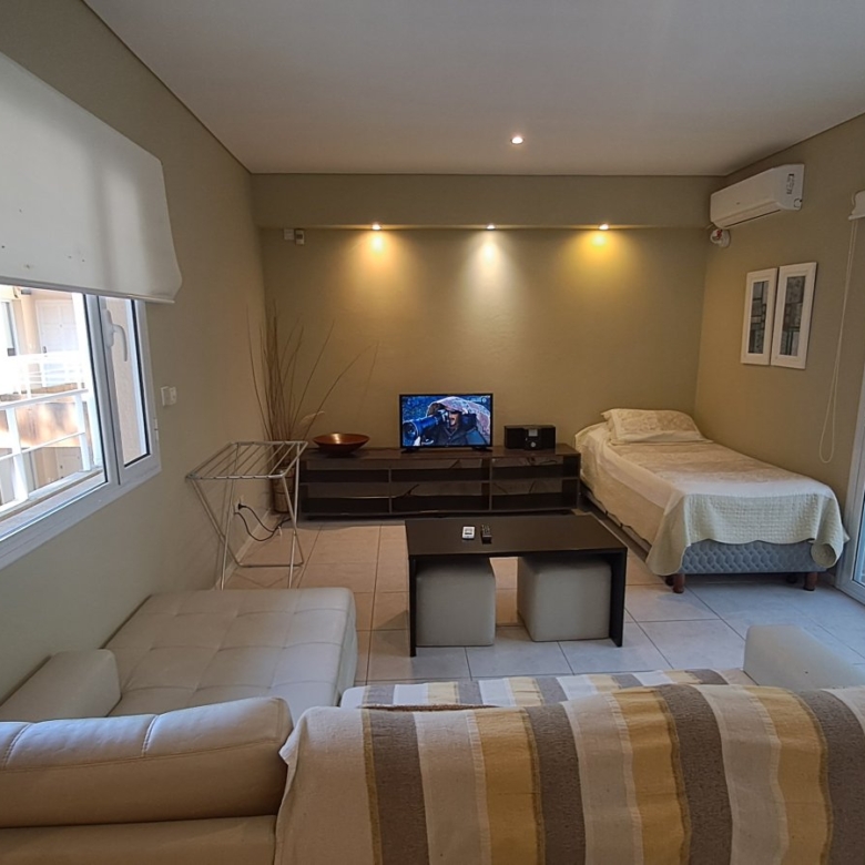 Moderna unidad totalmente equipada. : Posee un dormitorio en suite con sommier de 2 plazas, un segundo dormitorio con 3 camas individuales (una marinera), 2 baños completos.