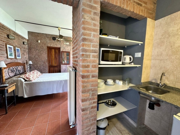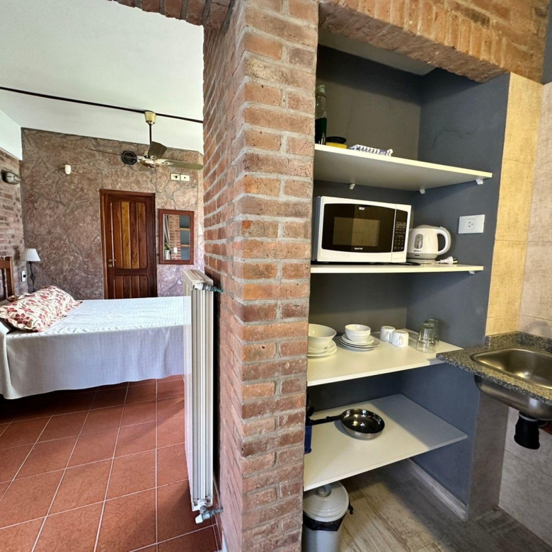12 habitaciones equipadas con heladeras, bajo mesada, microondas ,pava eléctrica, vajilla.