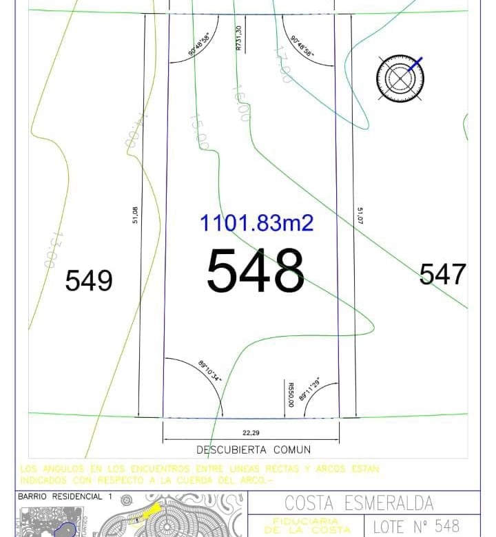 Lote de 1102 m2 en venta en uno de los barrios mas solicitados y consolidados de Costa Esmeralda. Con orientación Noroeste y fondo libre, es uno de los pocos lotes sin edificar en su ubicación.