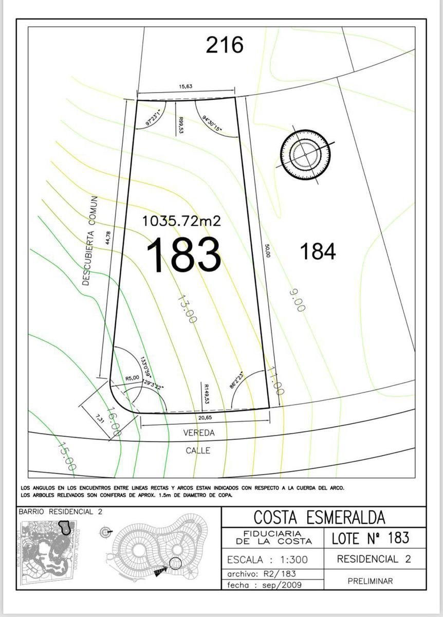 Venta lote 183, Residencial II , Costa Esmeralda, Costa Atlántica.